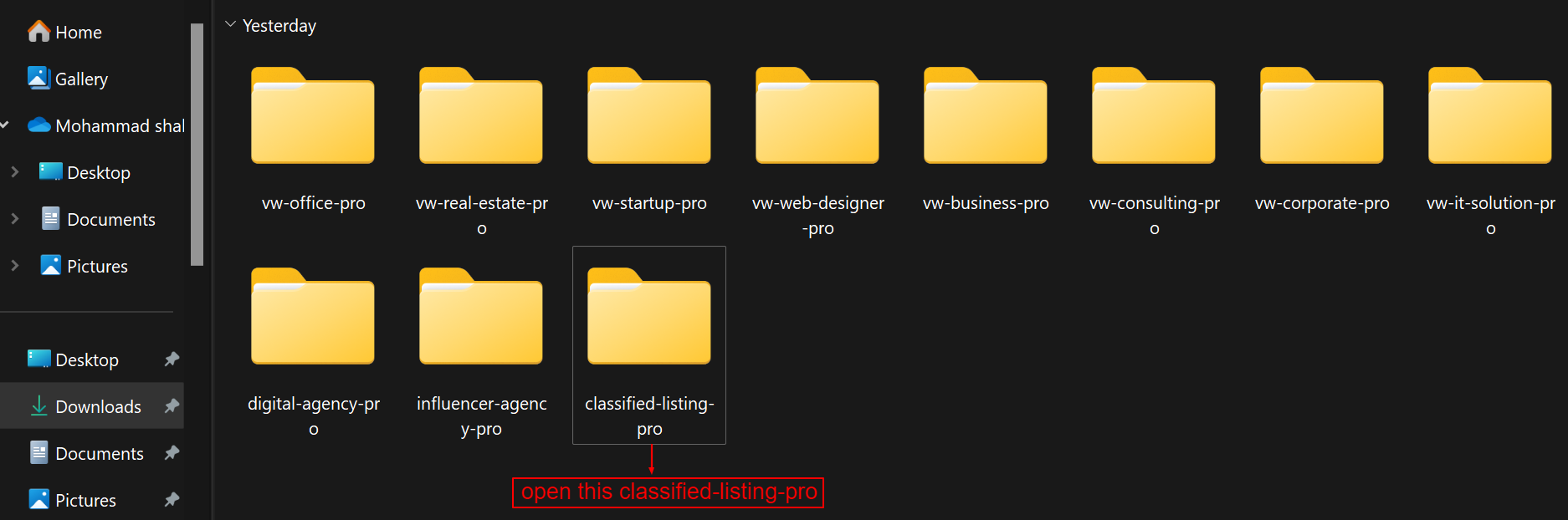 - You may find these files by opening the classified listing pro folder, as seen in the screenshot below.