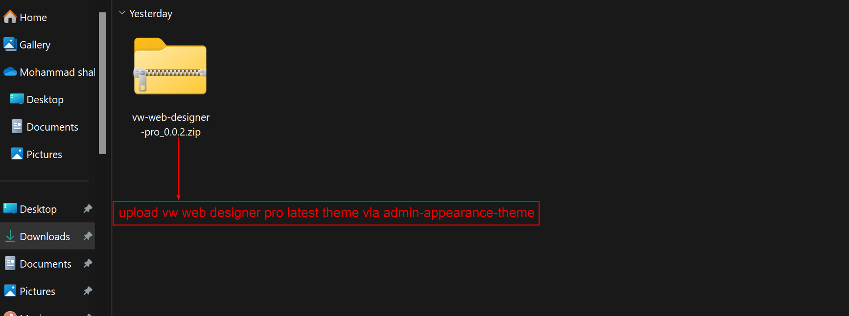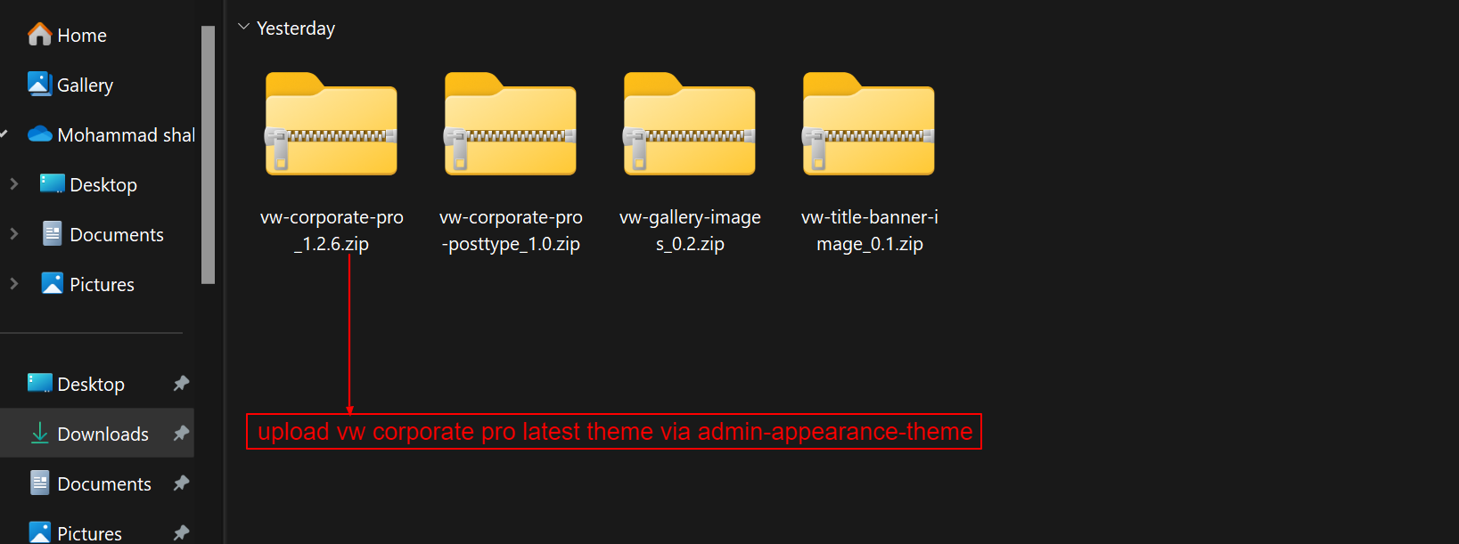- The option to upload a zip file will appear after you click Add New Theme, Download the file vw corporate pro 1.3 zip (latest version).