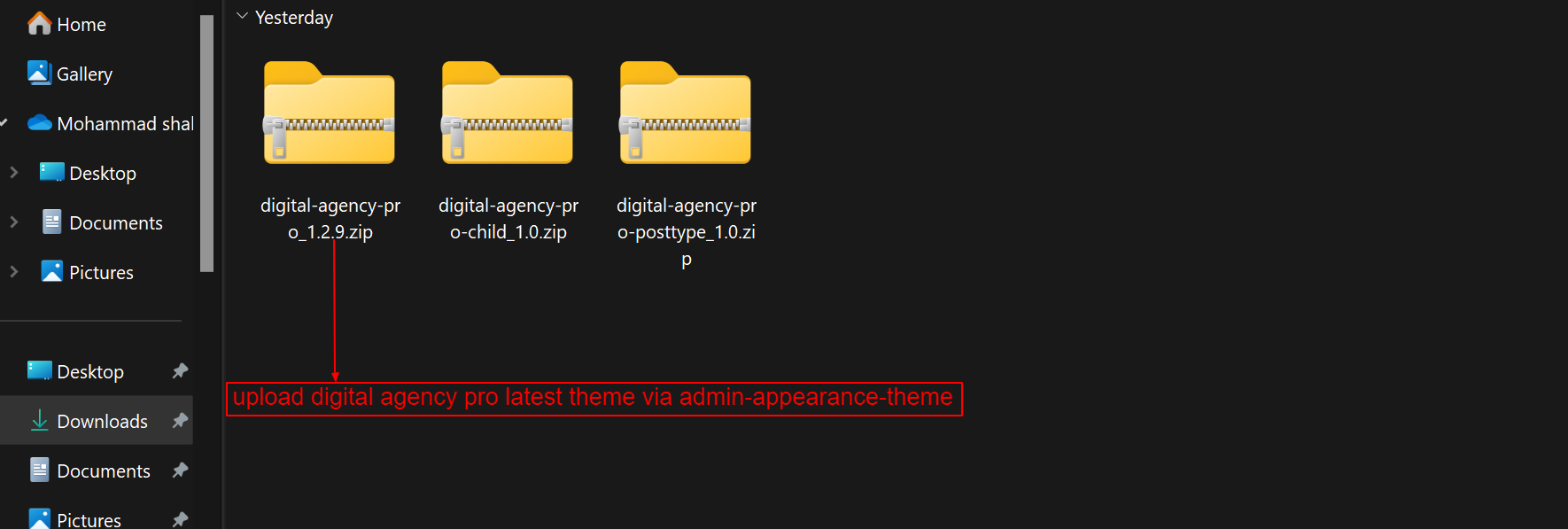 - The option to upload a zip file will appear after you click Add New Theme, Download the file digital agency pro 1.3 zip (latest version).