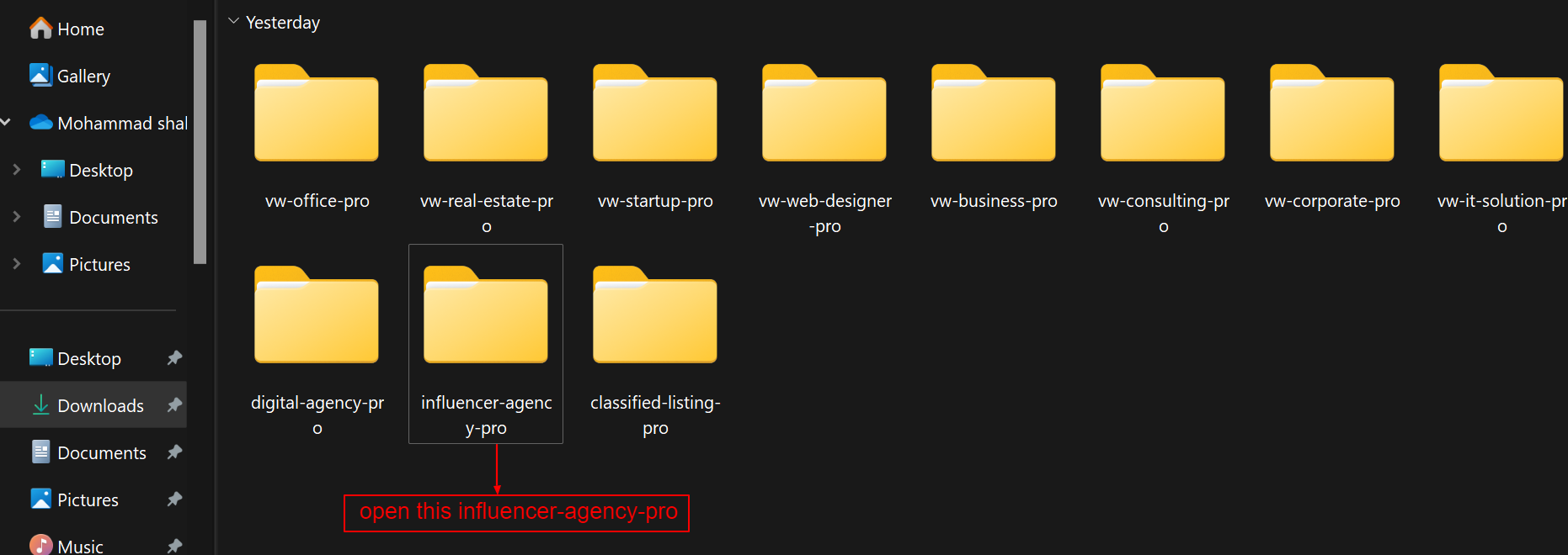 - You may find these files by opening the influencer agency pro folder, as seen in the screenshot below.