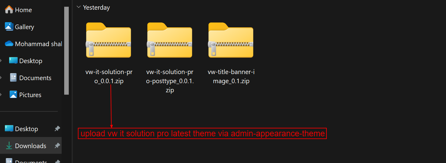 - The option to upload a zip file will appear after you click Add New Theme, Download the file vw it solution pro 1.3 zip (latest version).