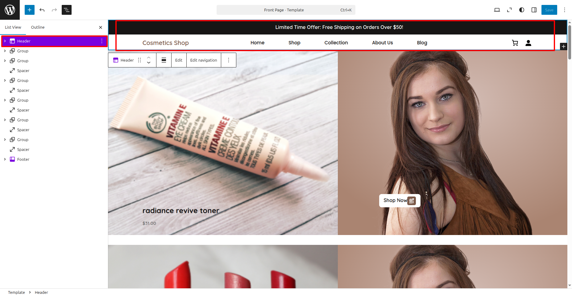 In order to setup the Header Section, follow the below steps.