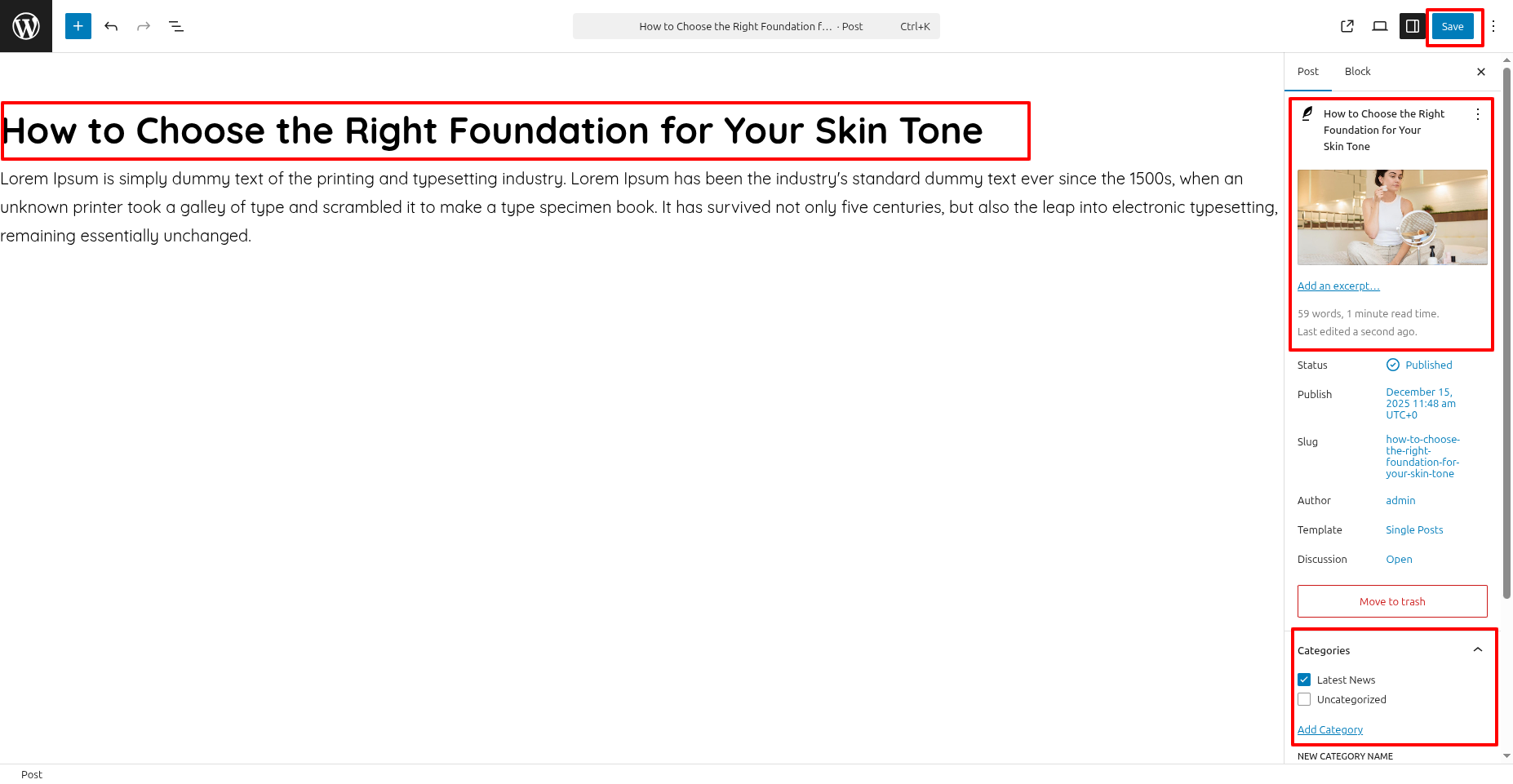 Add Title, Content, Set Featured Image and select Category, Then click on Publish Button