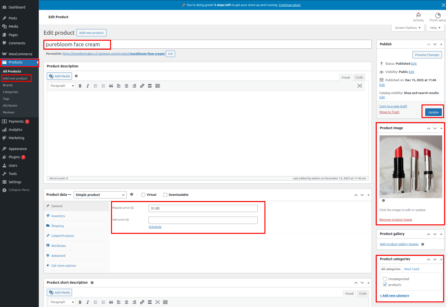 Go To Dashboard >> Products >> Add New Product