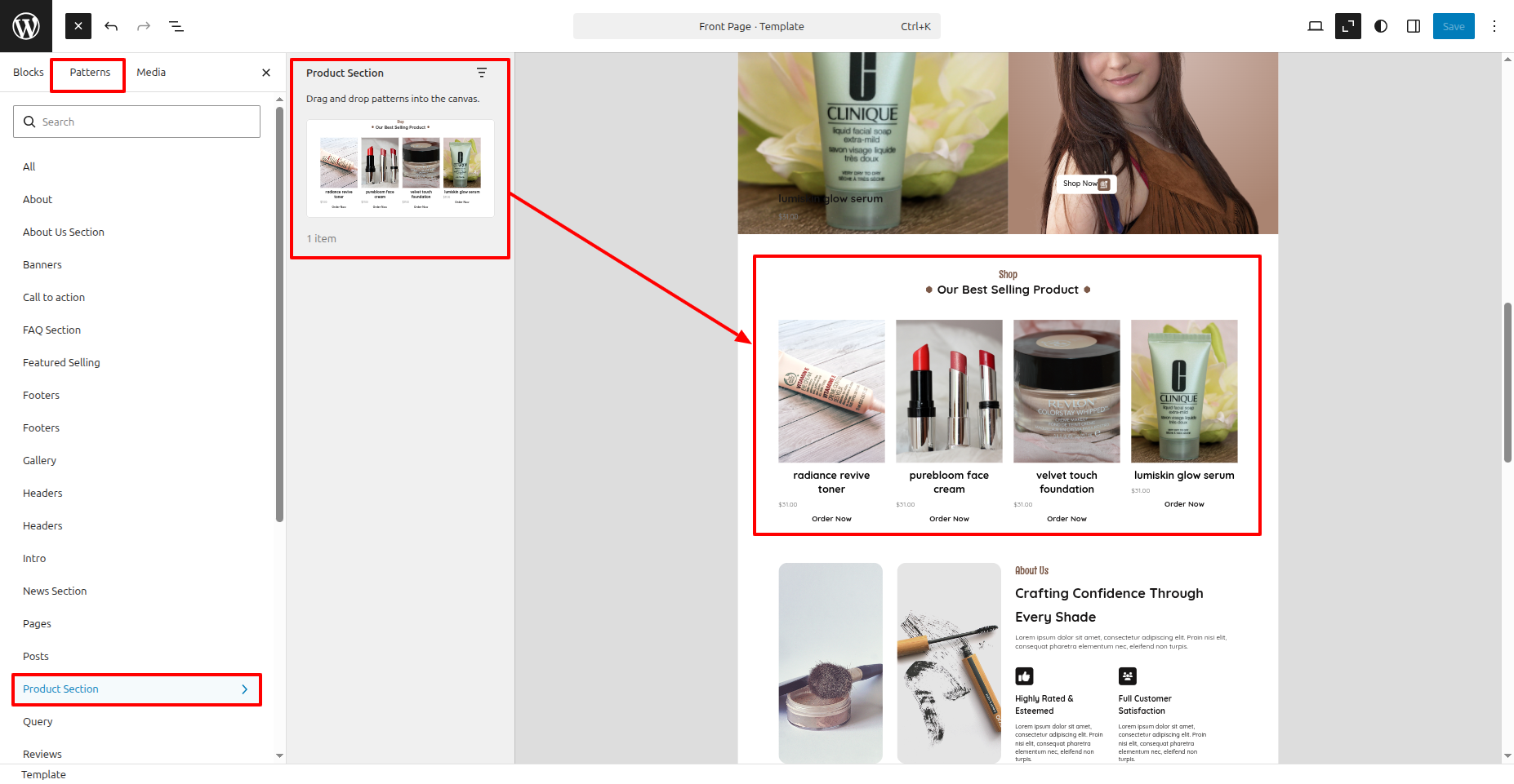 The Product Section will appear as such on the front end.