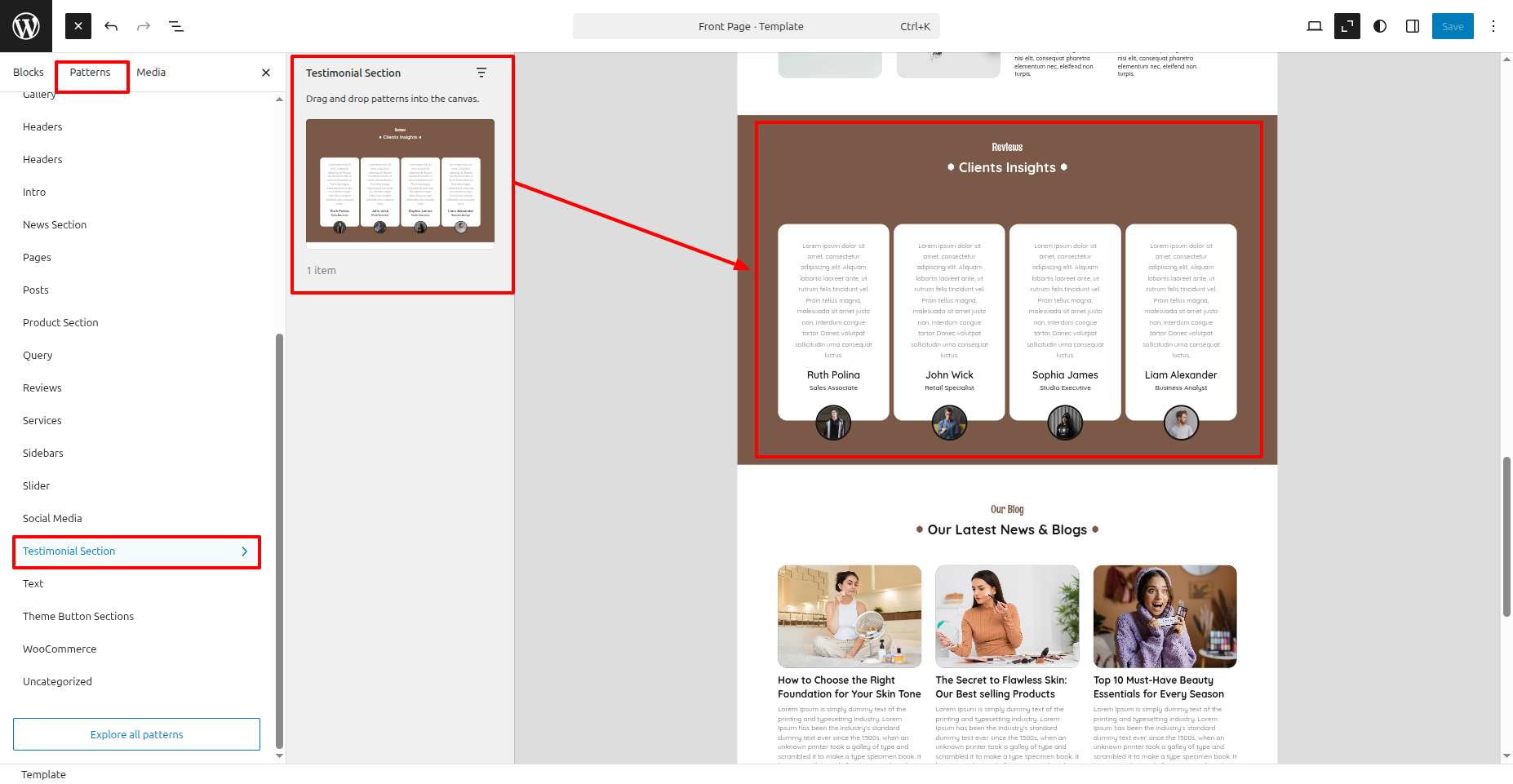 Setup Testimonial Section