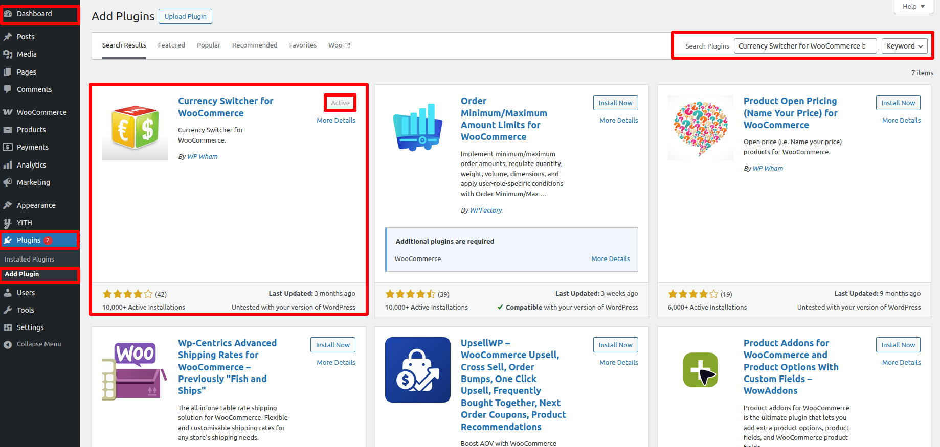 Install and Activate the Currency Switcher for WooCommerce Plugin as shown in figure below