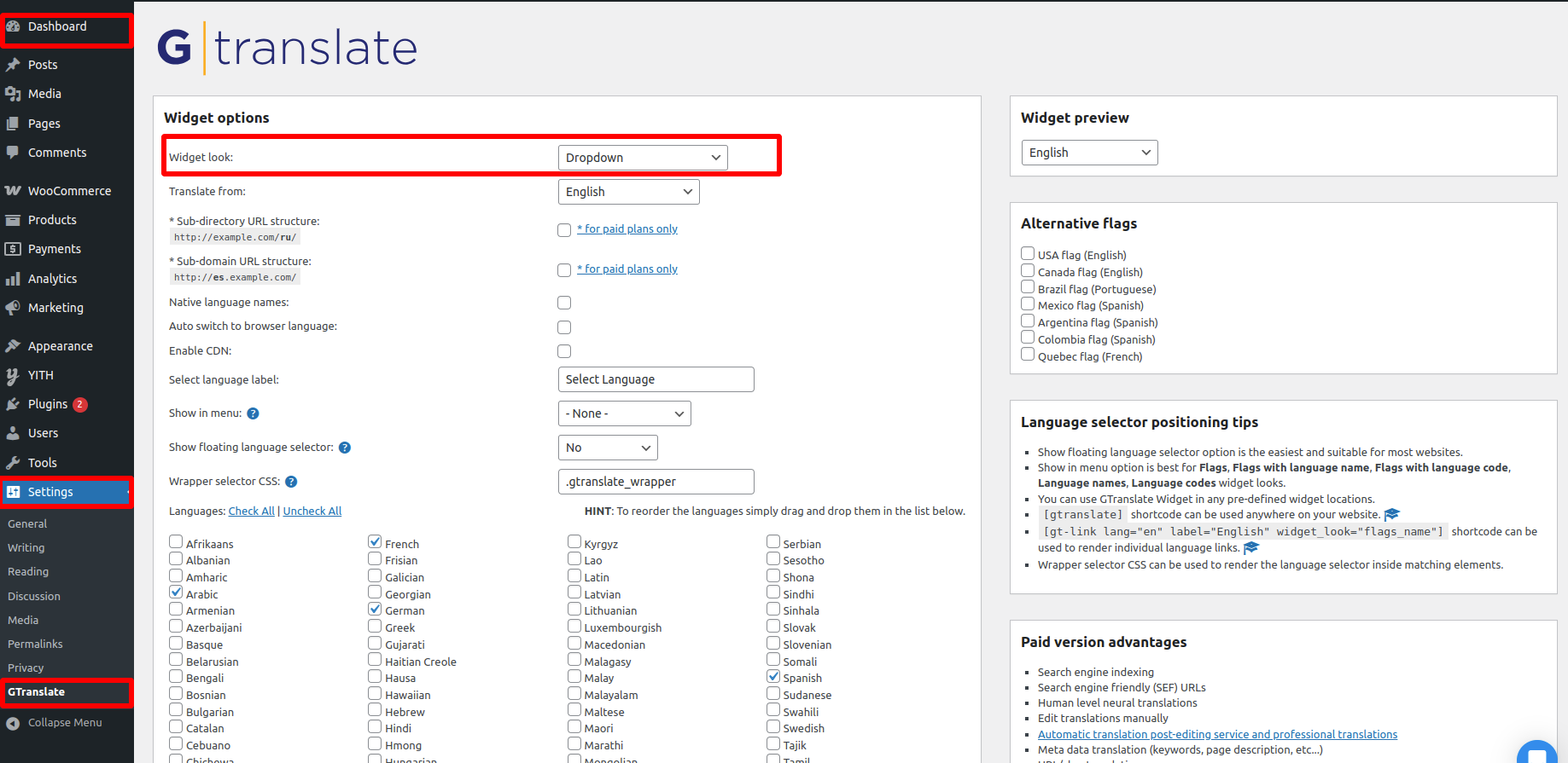 Go To Dashboard >> WooCommerce >> Settings >> GTranslate