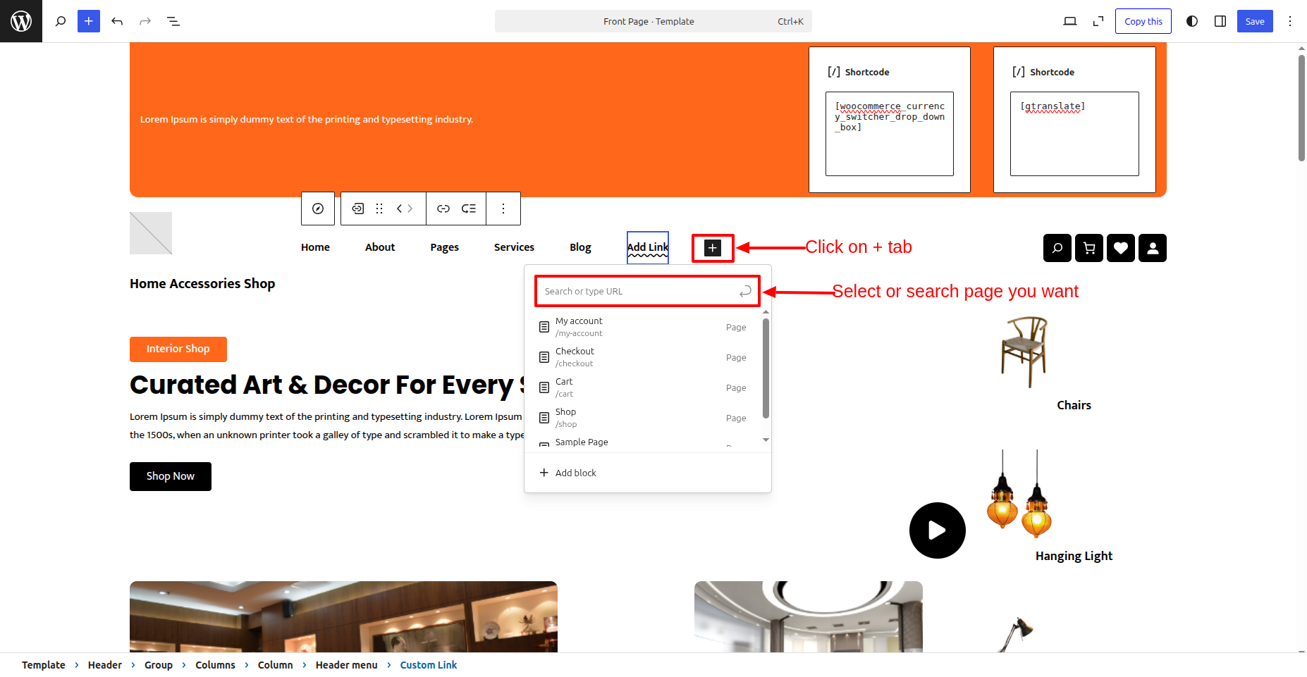 5.3. To display a currency switcher and language selector (like the one shown in the top right corner of the demo page), follow these steps: