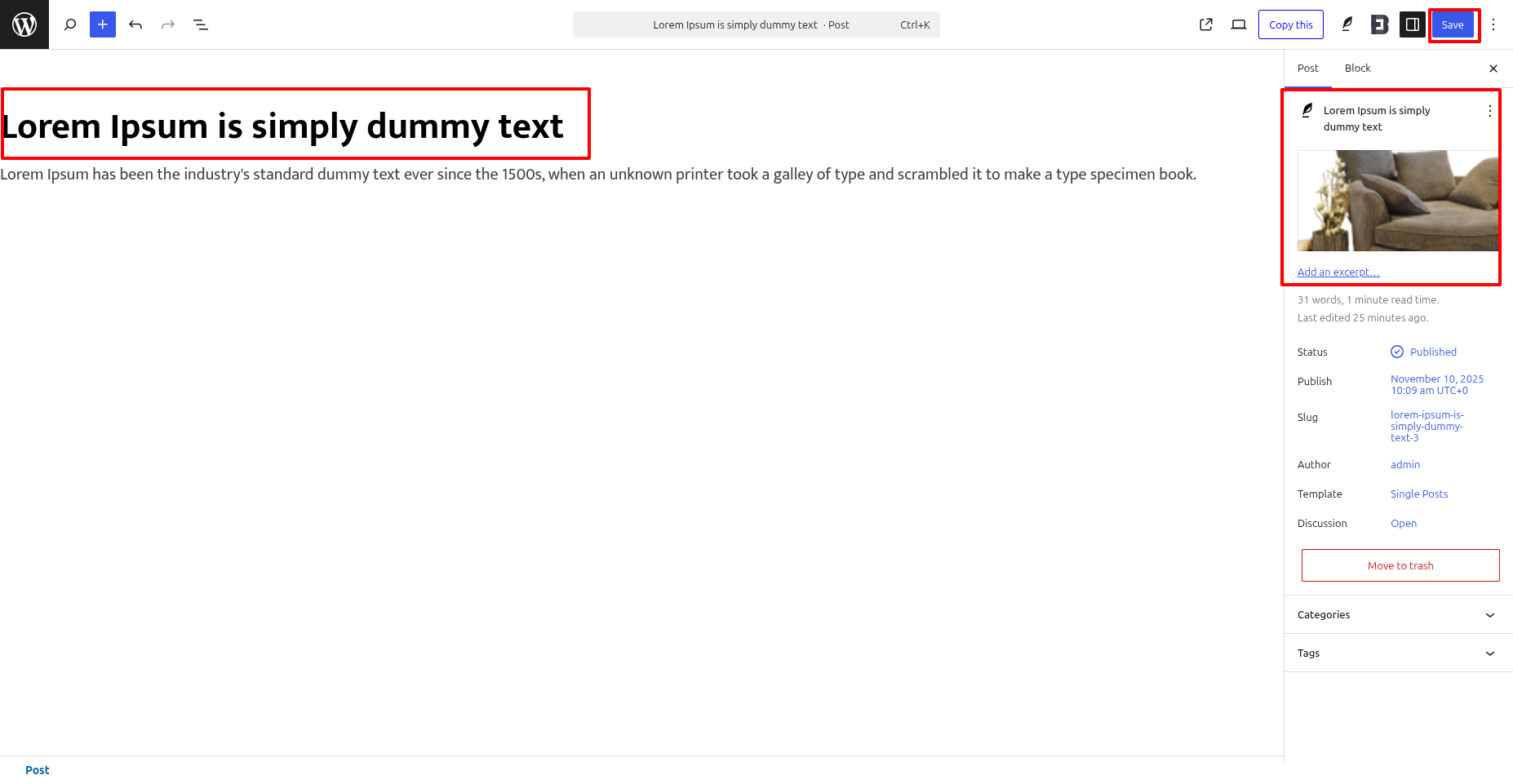 Add Title, Content, Set Featured Image and select Category, Then click on Publish Button