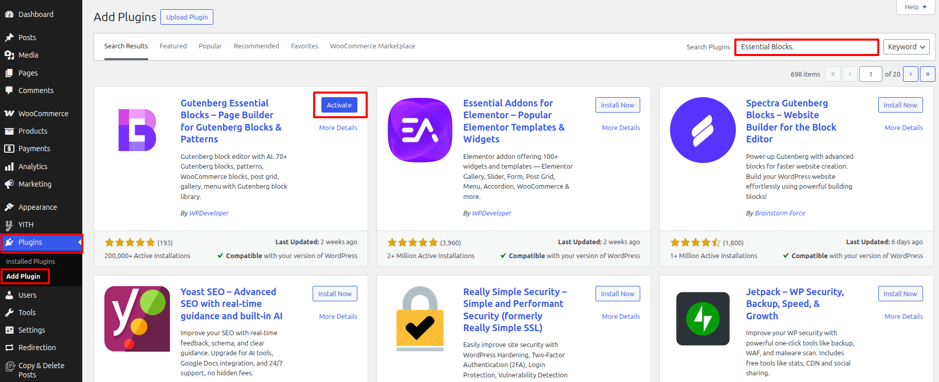 Install and Activate the WooCommerce Plugin as shown in figure below