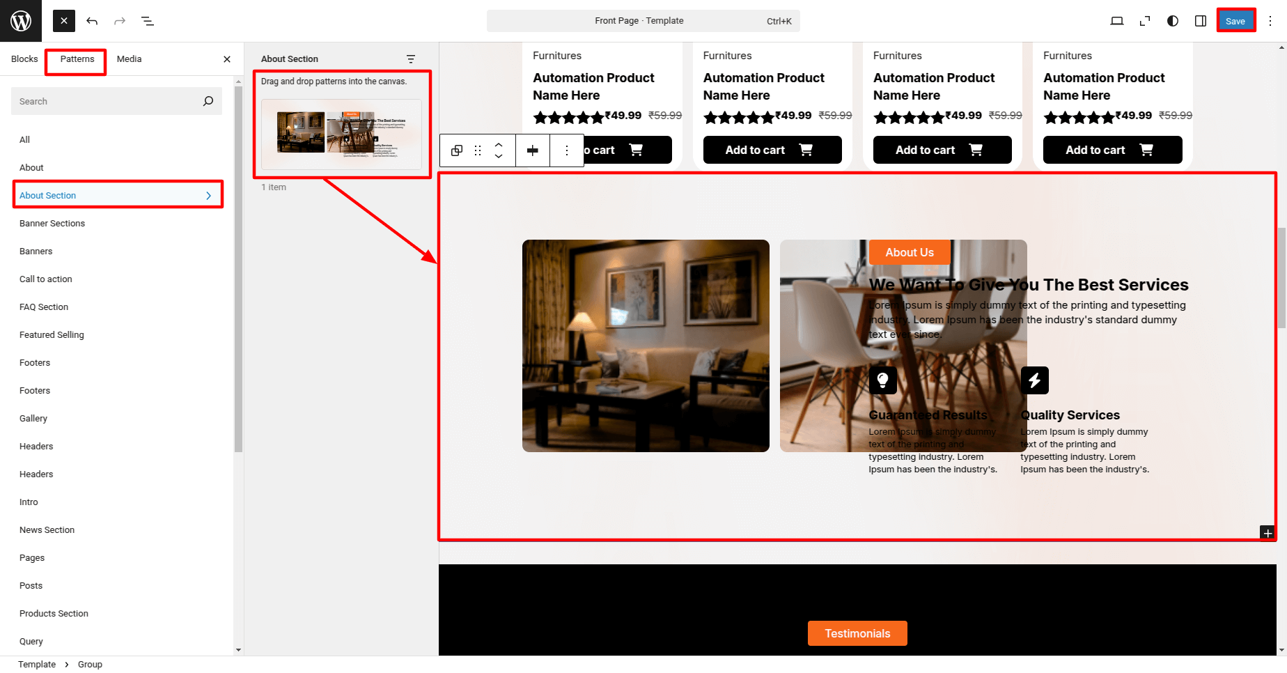 In order to setup the Testimonial Section follow the below steps.