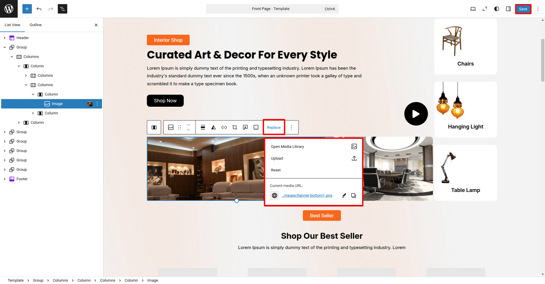 Setup Home page Template
