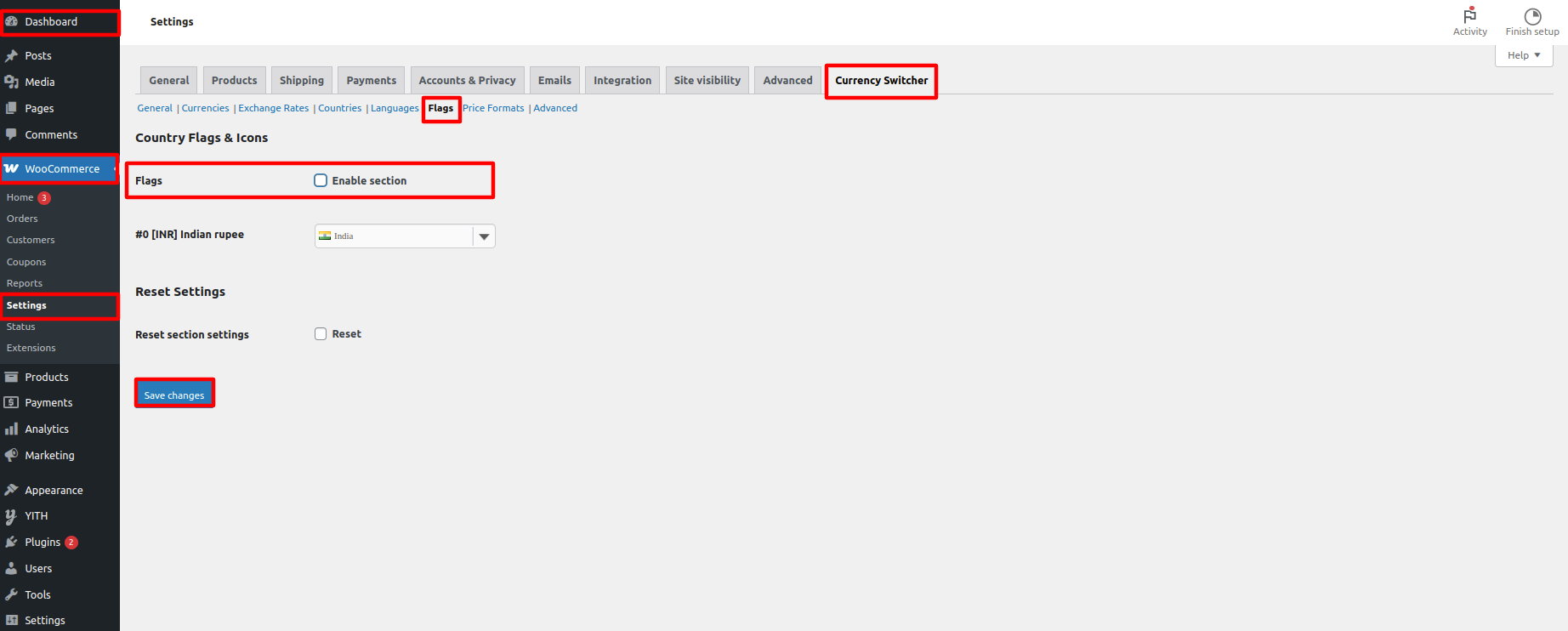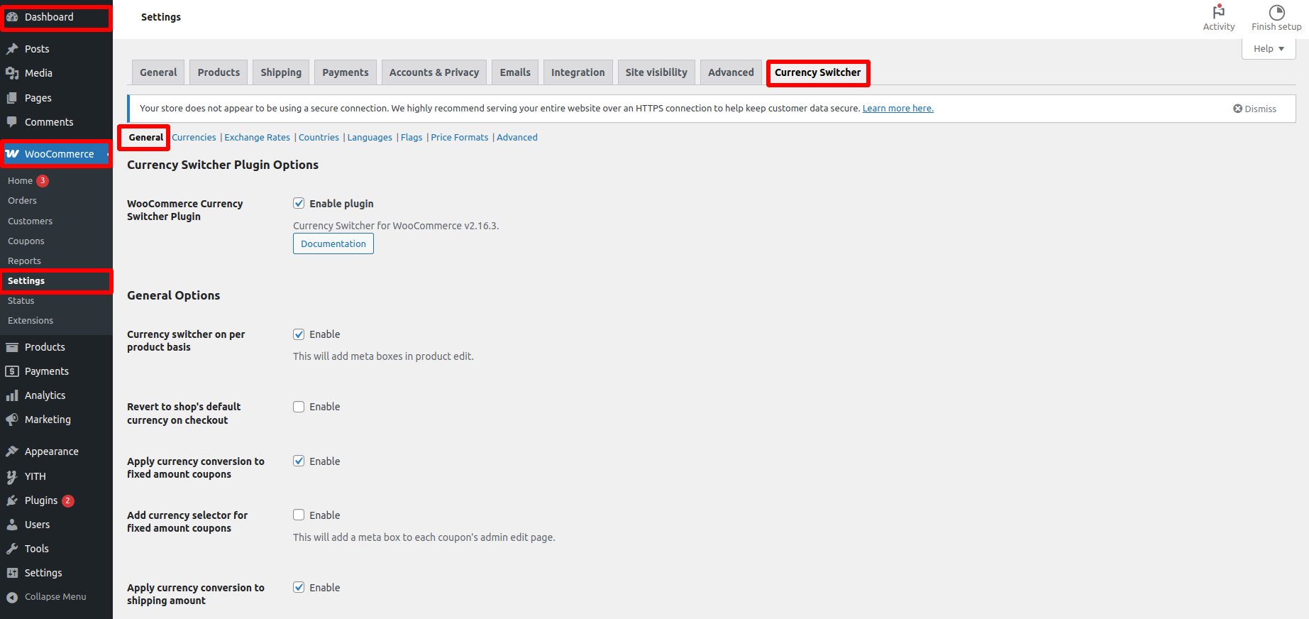 Go To Dashboard >> WooCommerce >> Settings >> Currency Switcher >> General