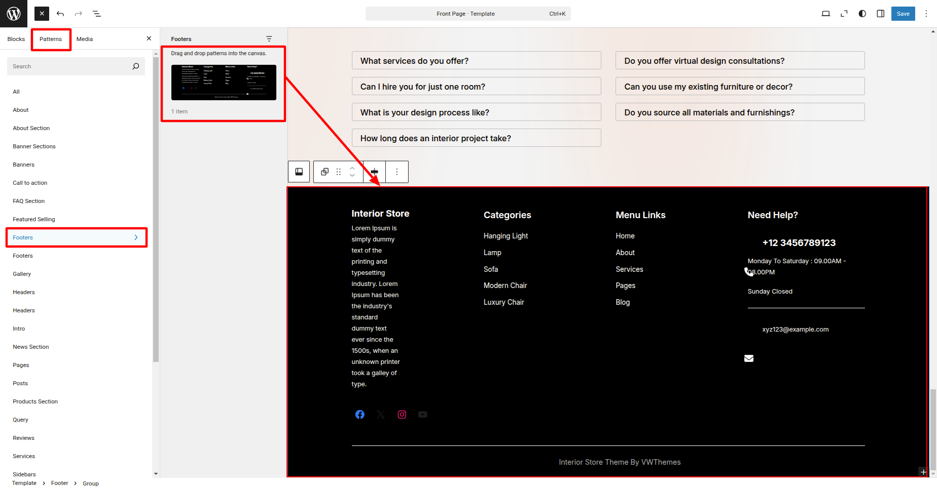 Setup Footer Section