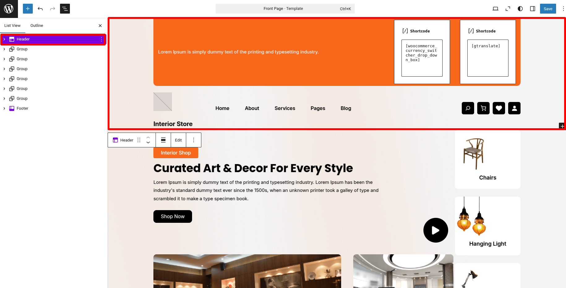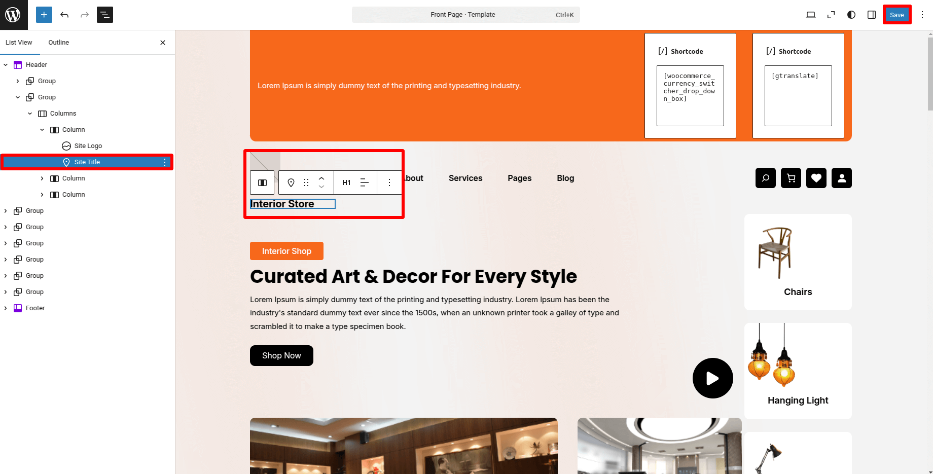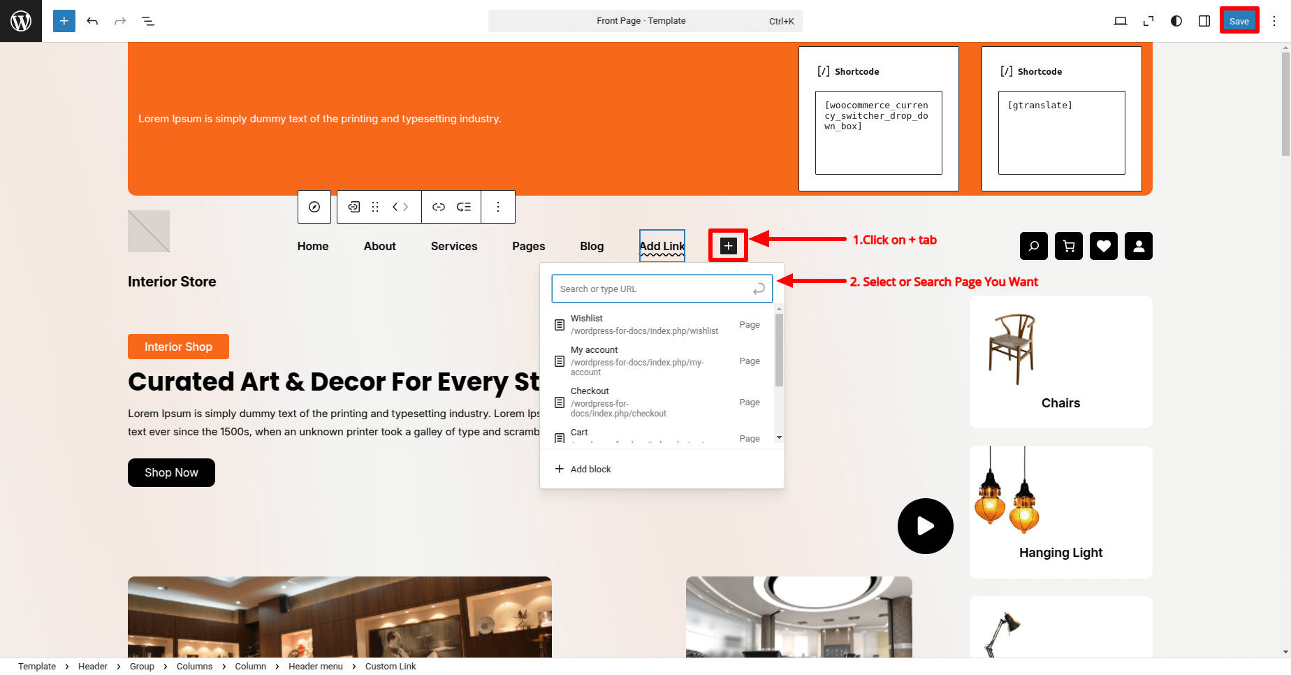 5. Add a Shortcode block where you want the switchers to appear.
