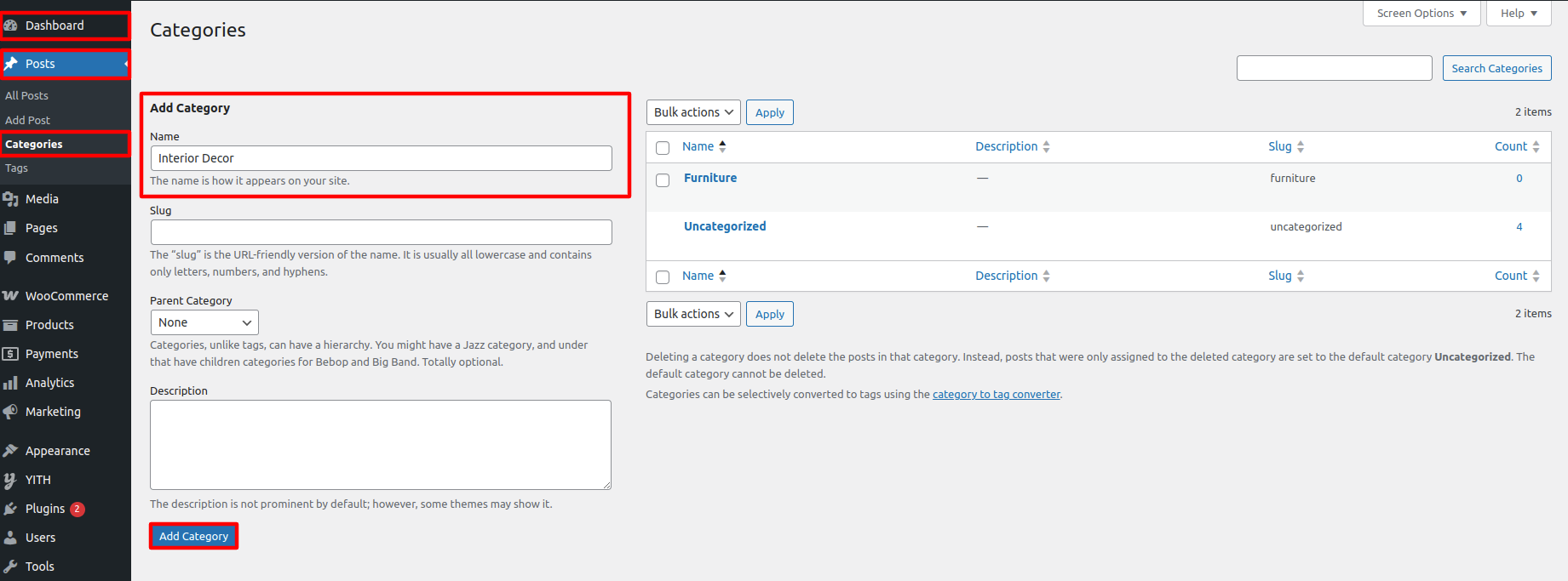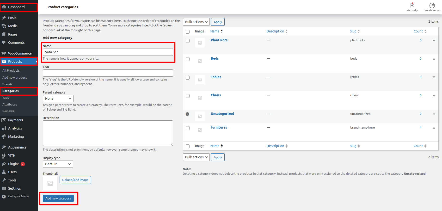 Go To Dashboard >> Products >> Categories