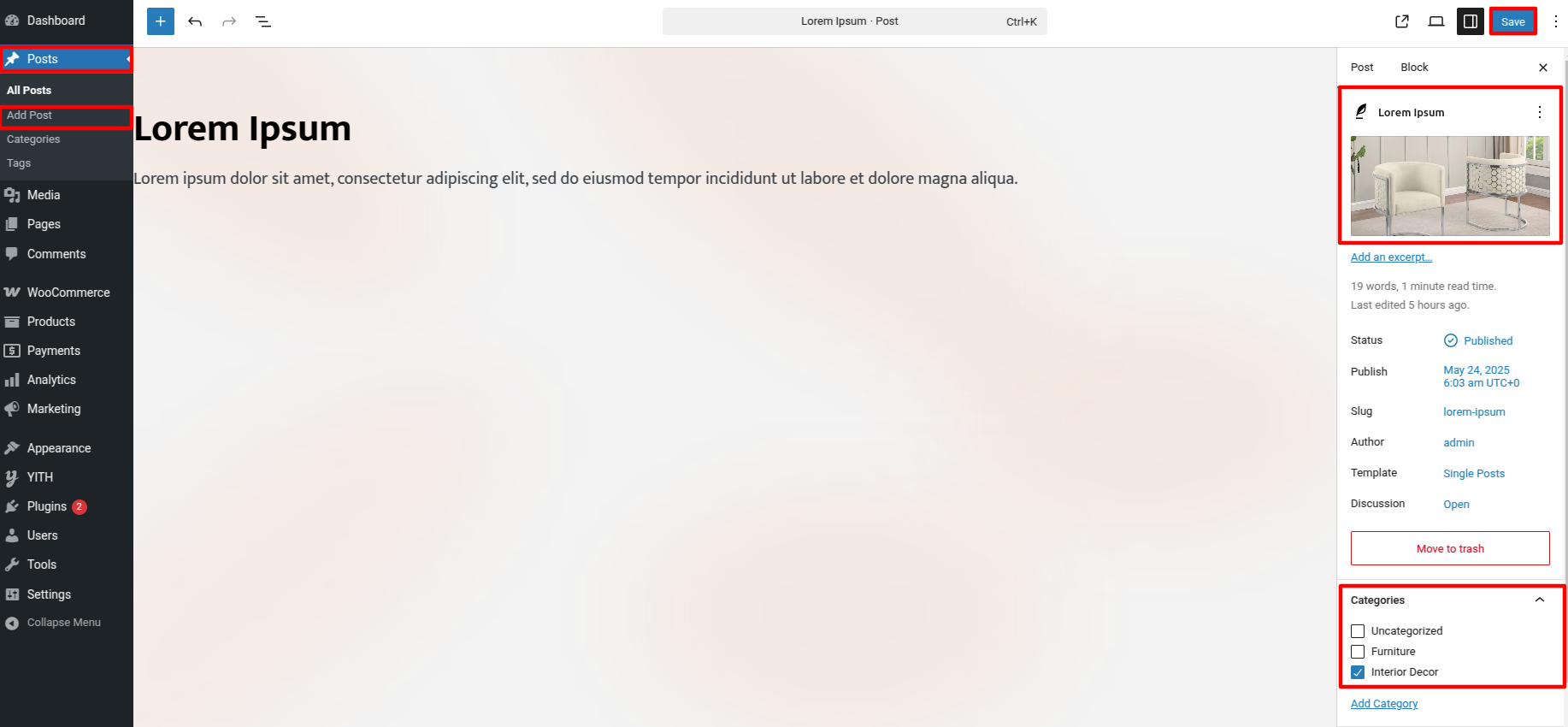 Add Title, Content, Set Featured Image and select Category, Then click on Publish Button