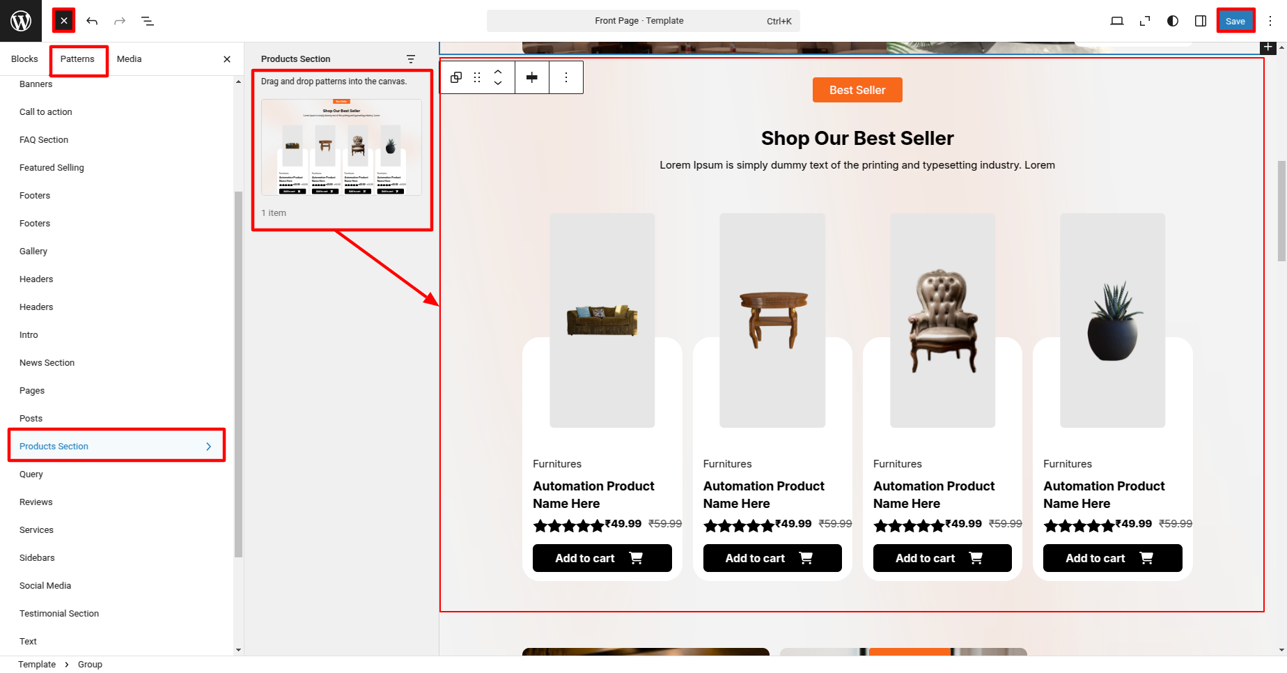 Setup Product Section