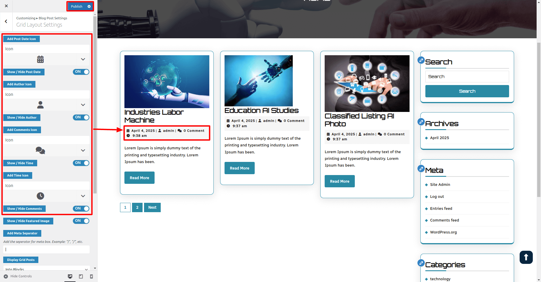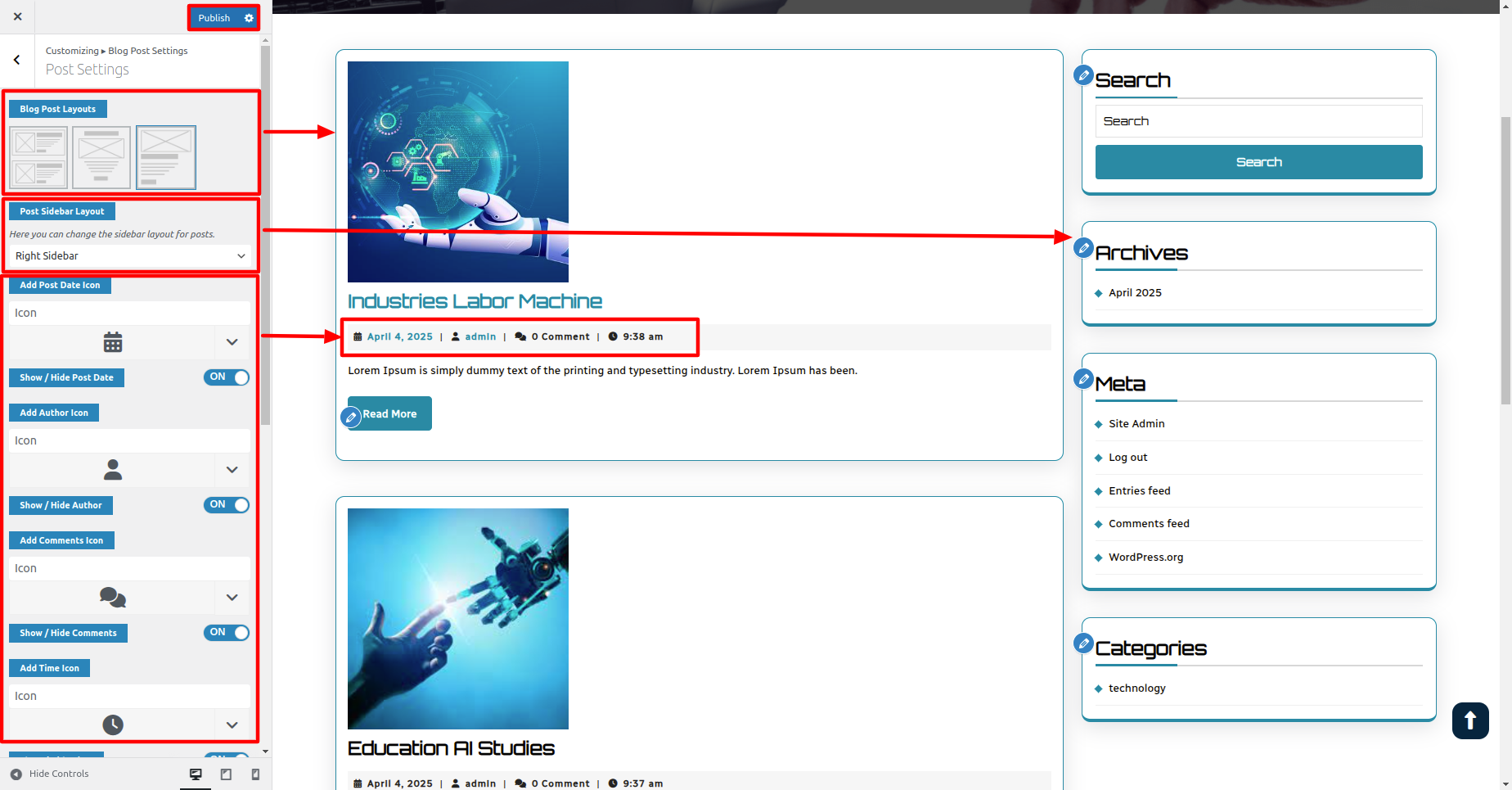 Go To Dashboard > Appearance > Customize > Blog Post Setting > Post Setting