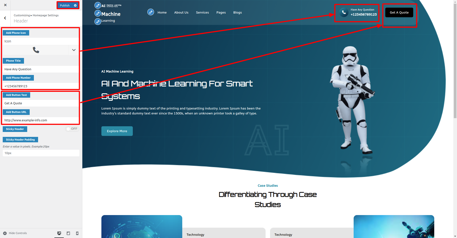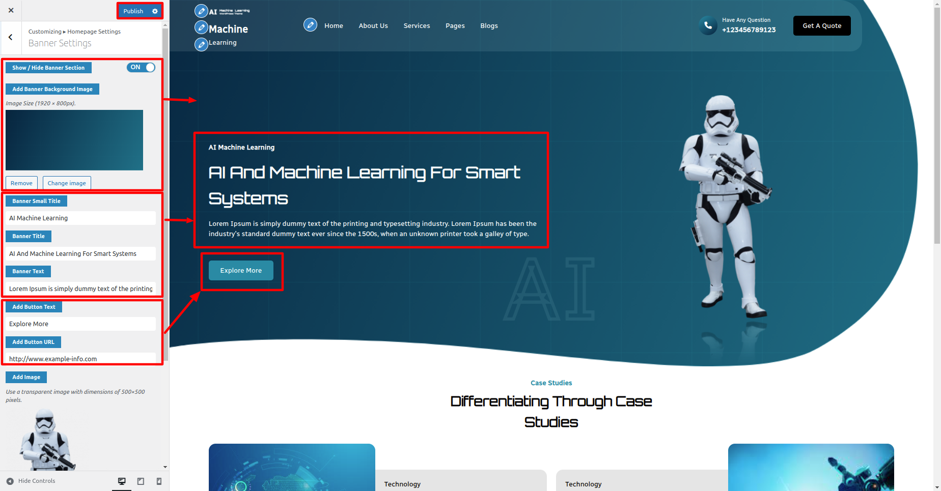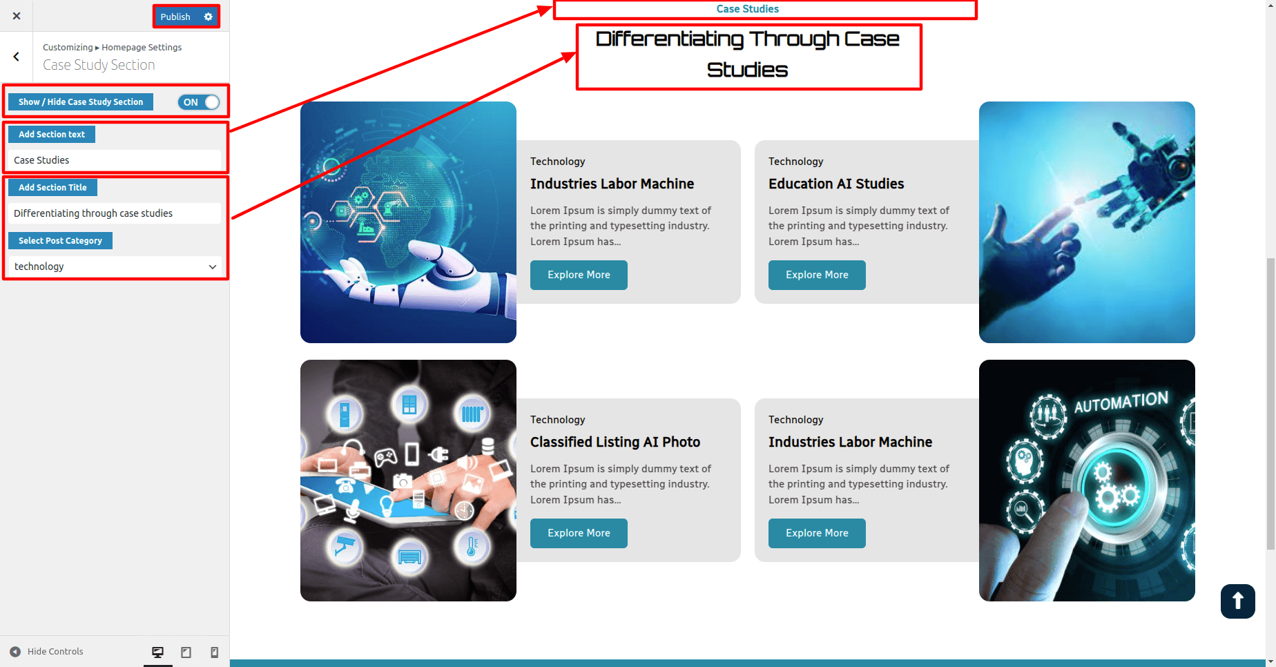 Now Go To Dashboard > Appearance > Customize > Homepage Settings > Case Study Section