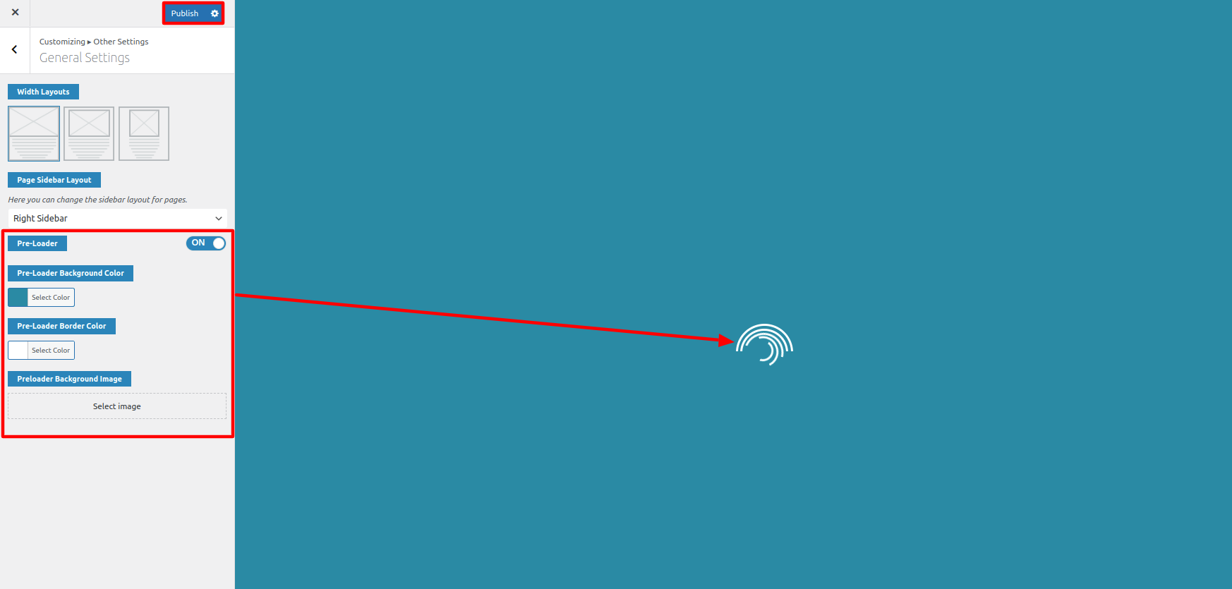 3. Pre-Loader: In this, you have option to show/hide the Pre-Loader in the theme and also have option for Pre-Loader type.
