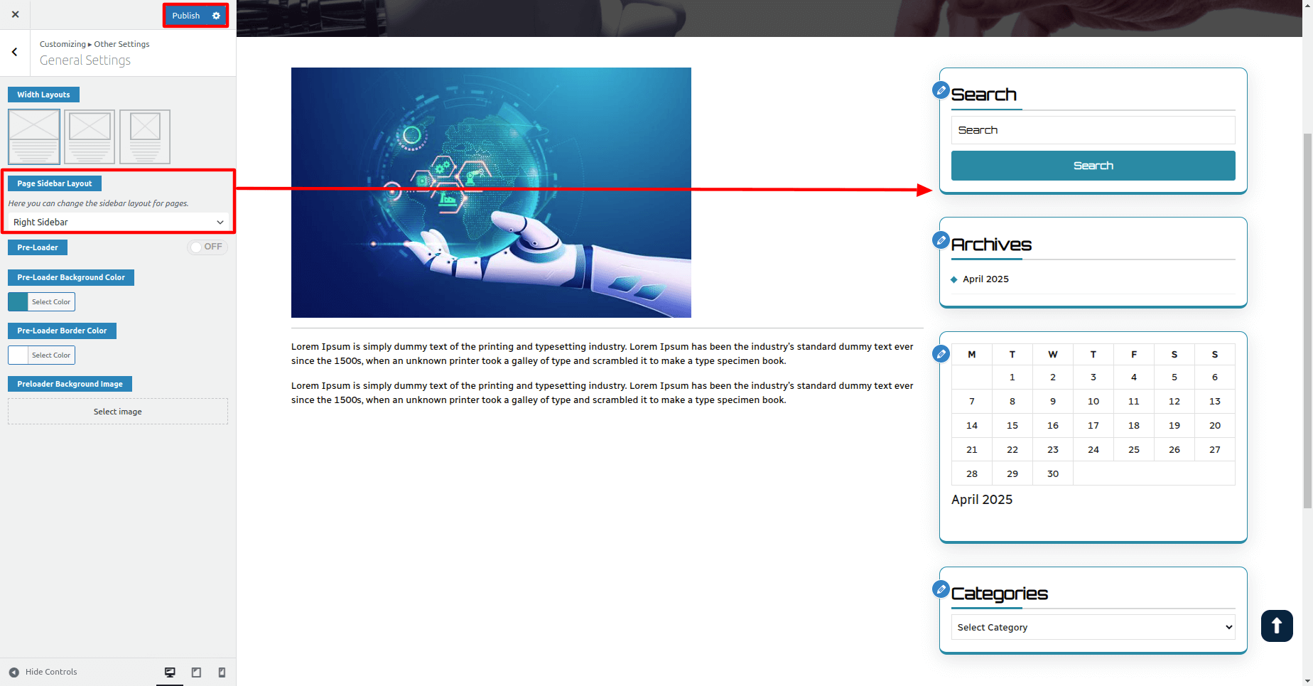 Go To Dashboard > Appearance > Customize > Other Setting > General Setting