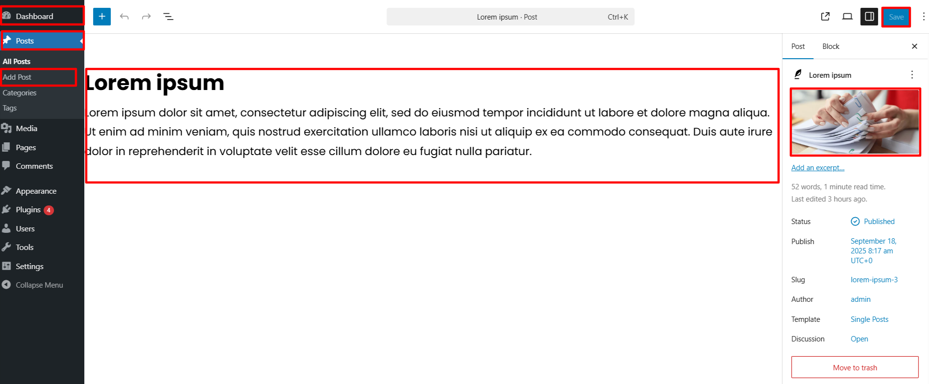 Add title, content, featured image as shown in figure below