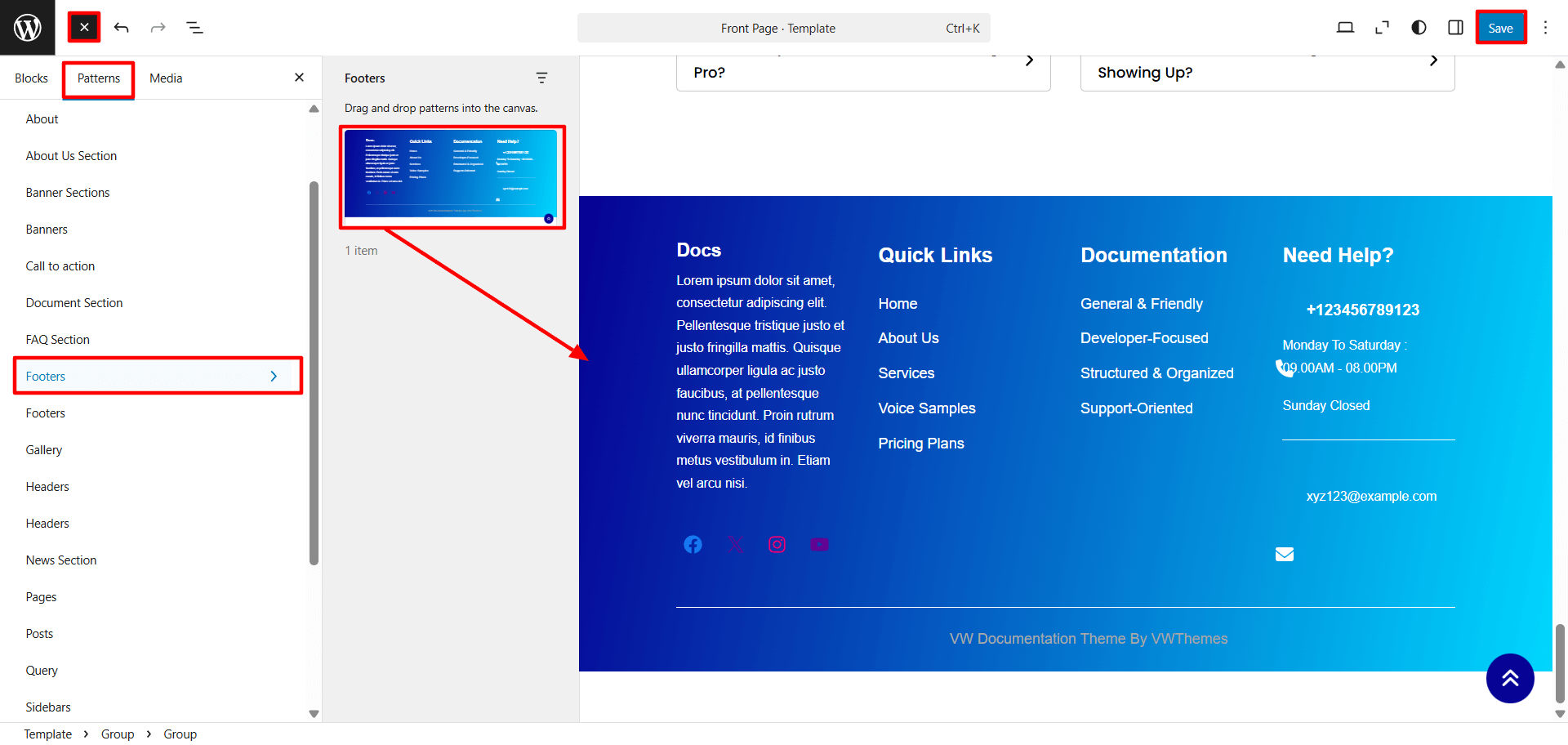 Setup Footer Section