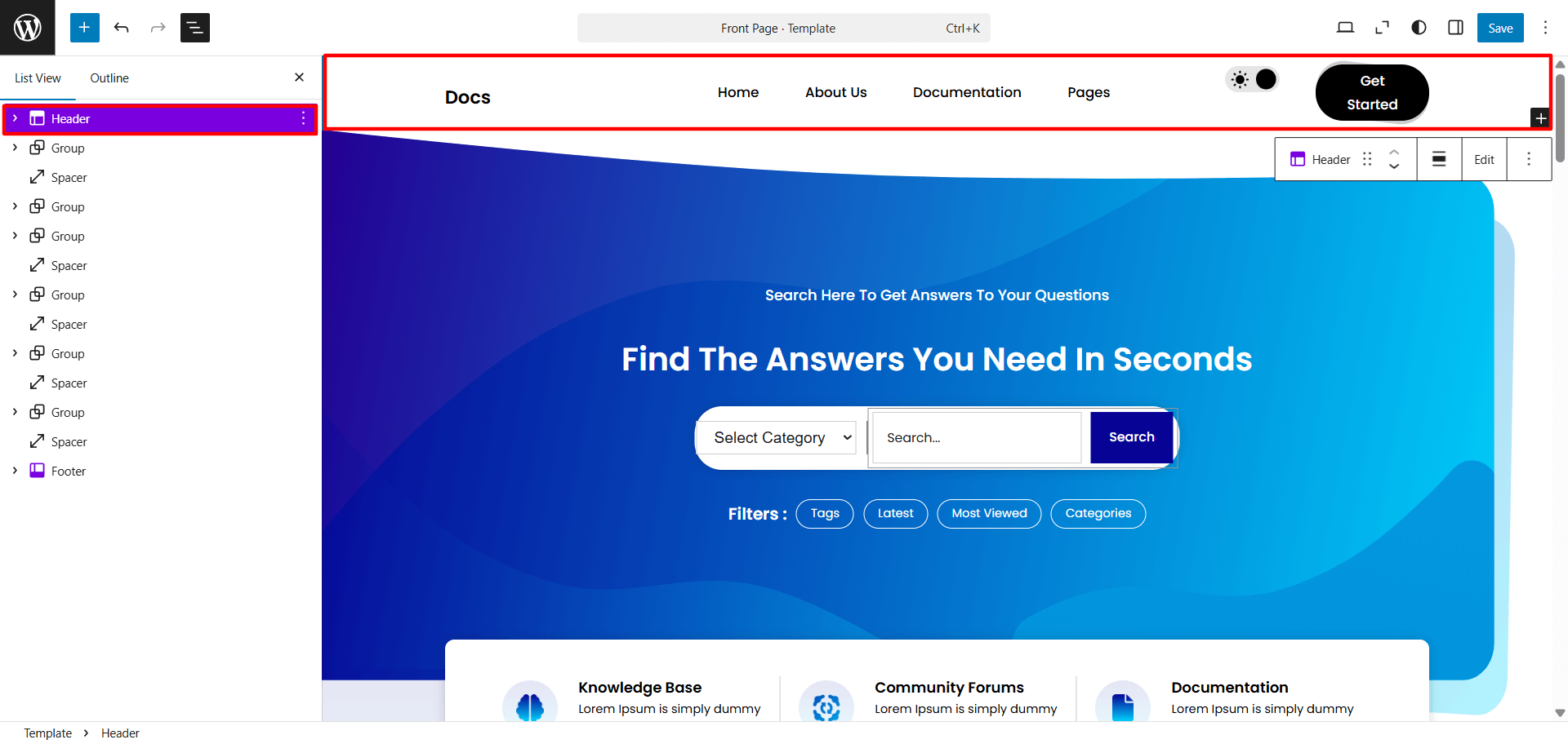 Setup Header Section