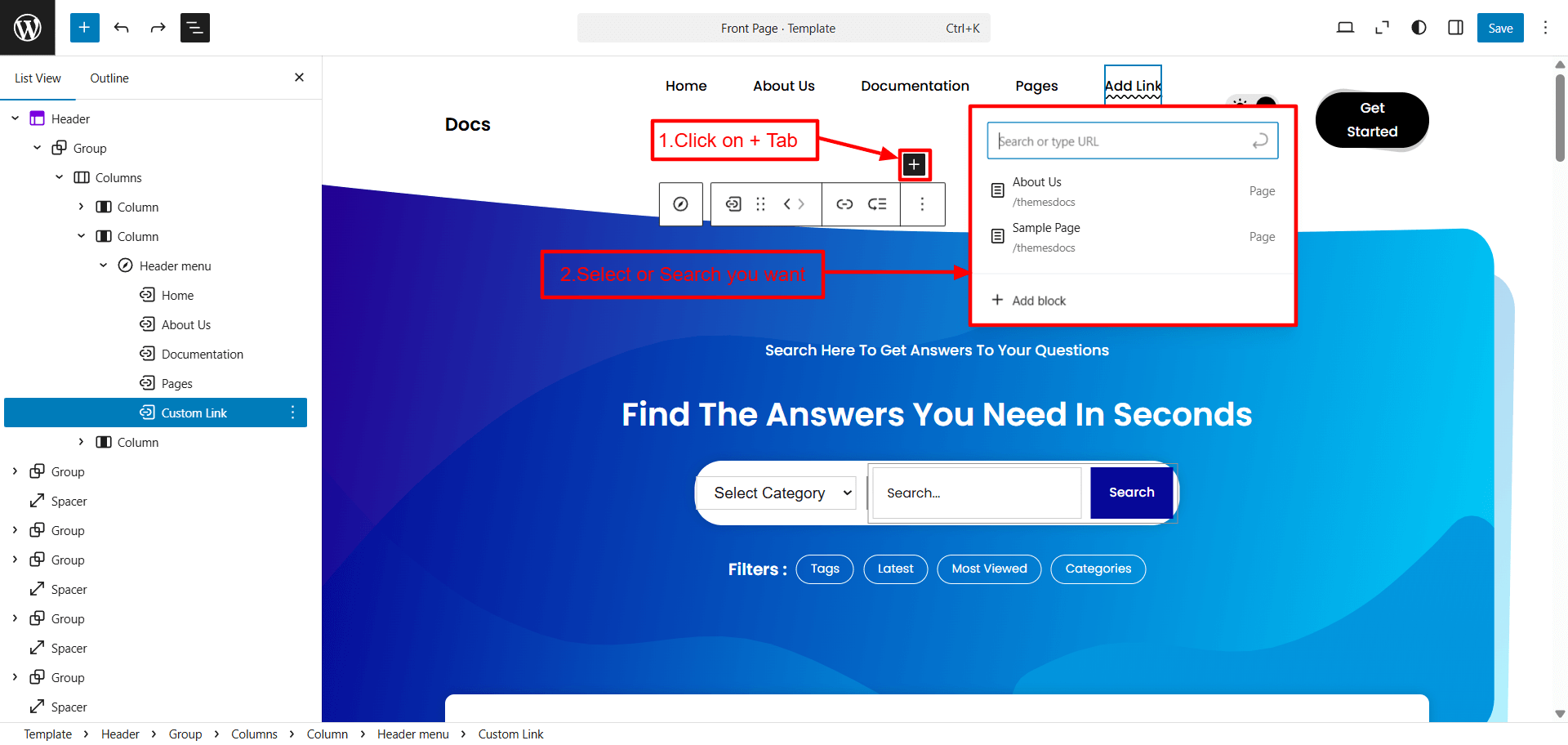 In order to setup the Documentation Section, follow the below steps.