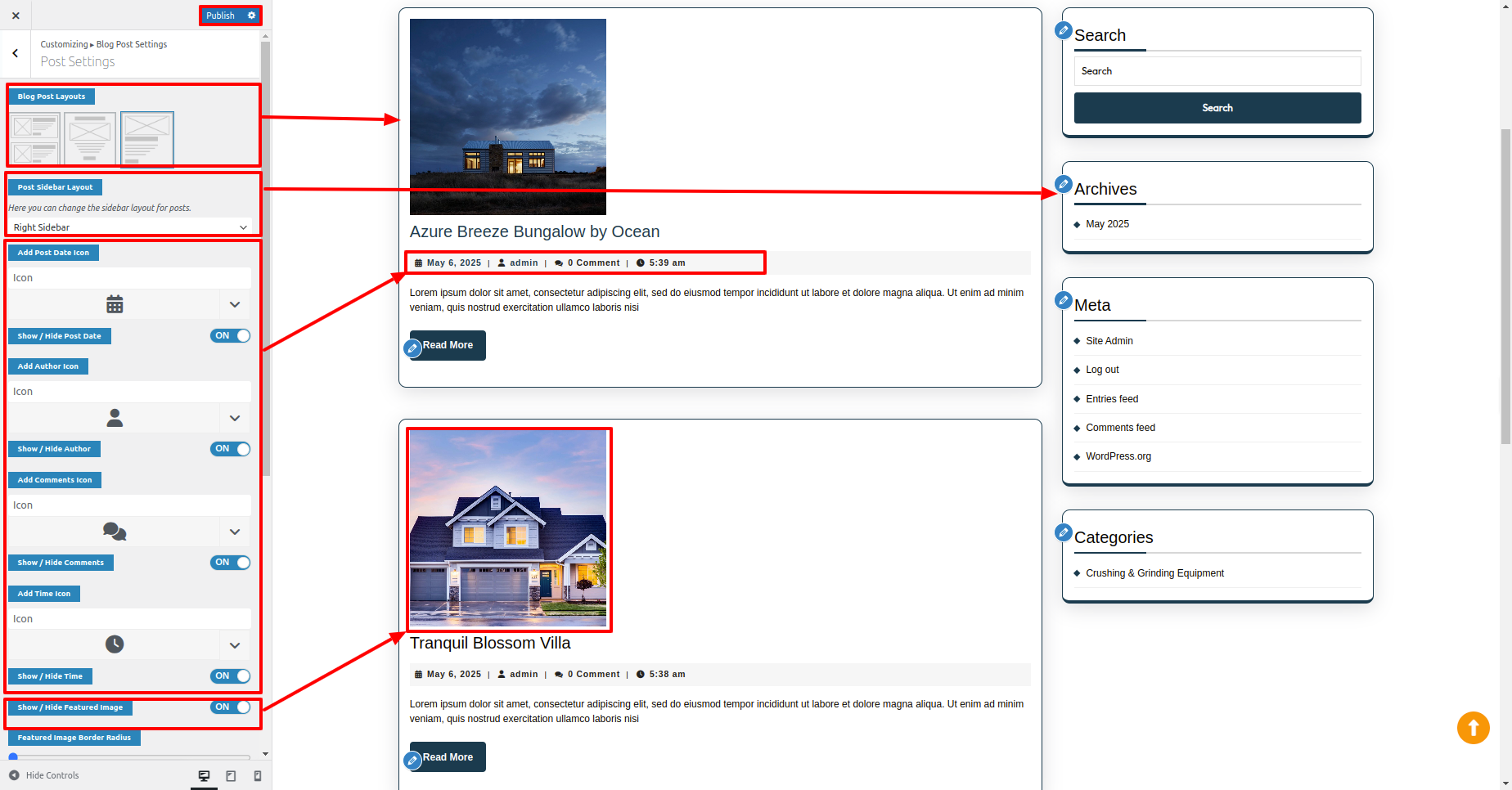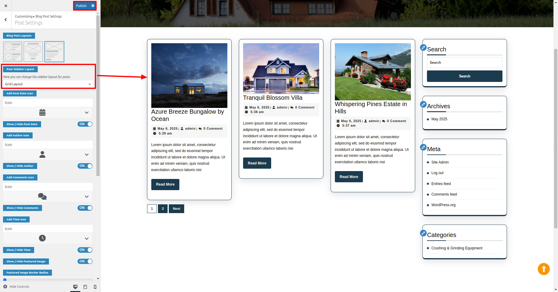 Now Go To Dashboard > Appearance > Customize > Blog Post Setting > Grid Layout Settings