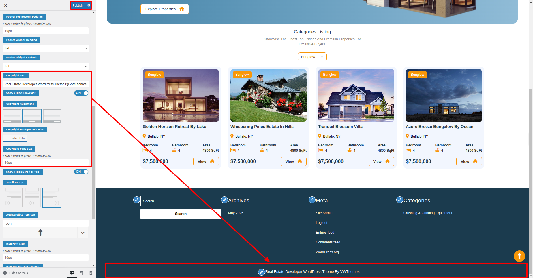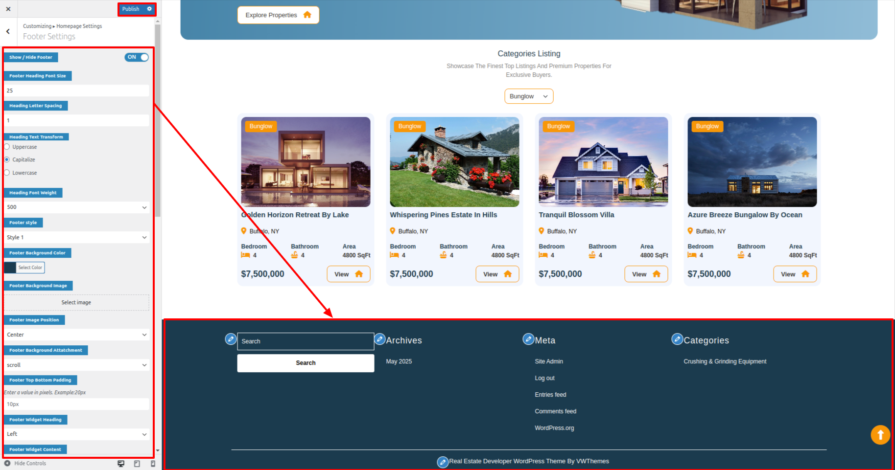 Go To Dashboard >> Appearance >> Customize >> Homepage Settings >> Footer Settings