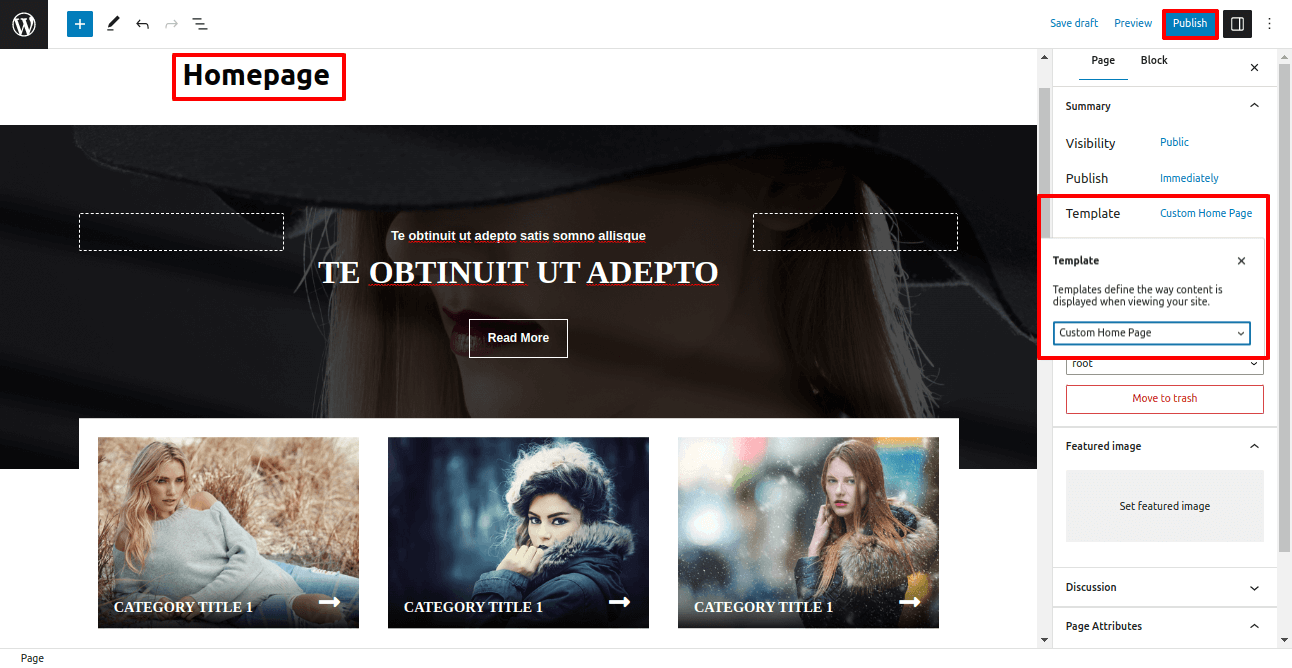 3.1. Create a new page and name it as "Home" then select the template "Custom Home page".