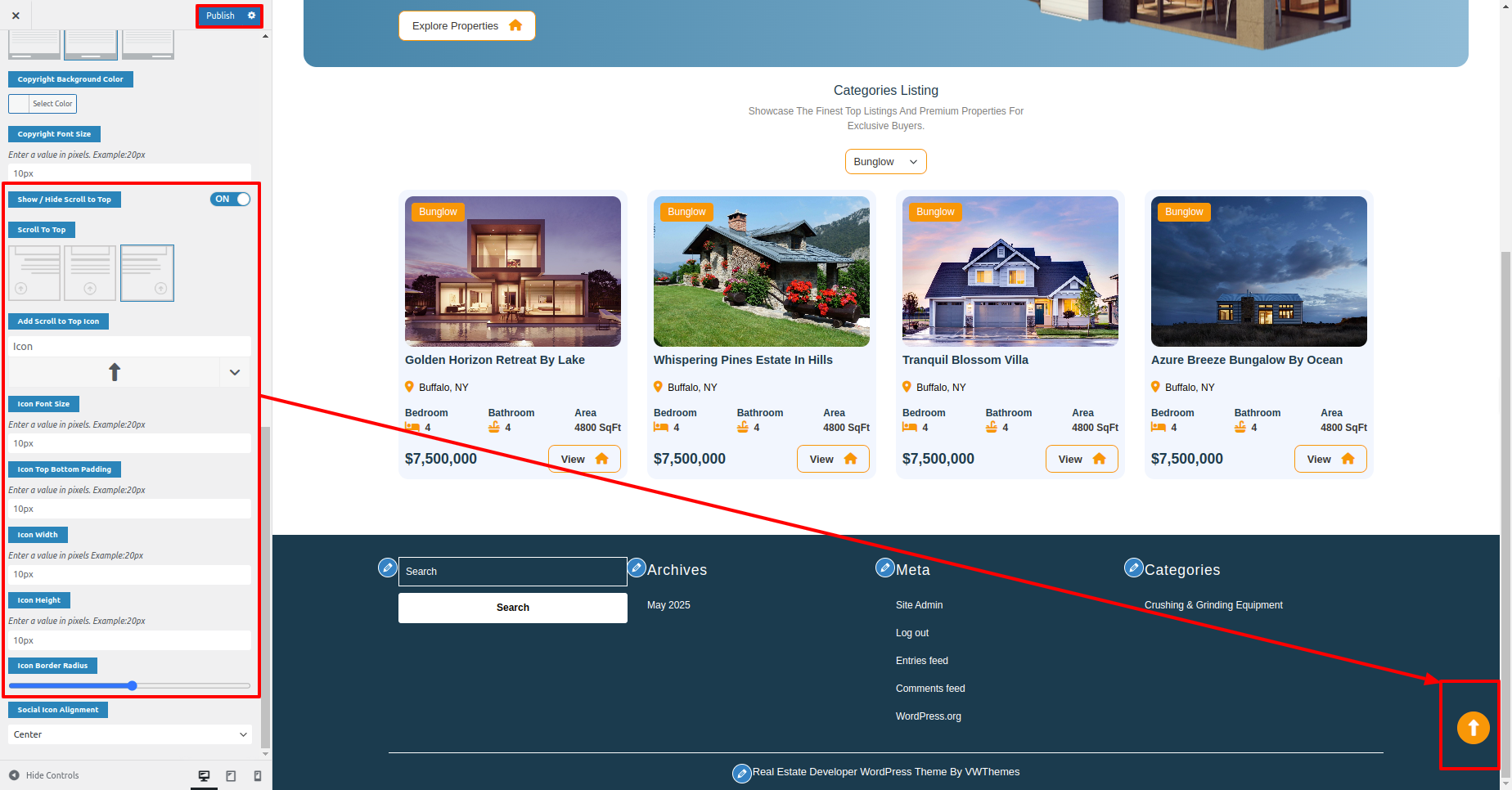 Here you have options to show/hide slider, sidebar and scroll to top.