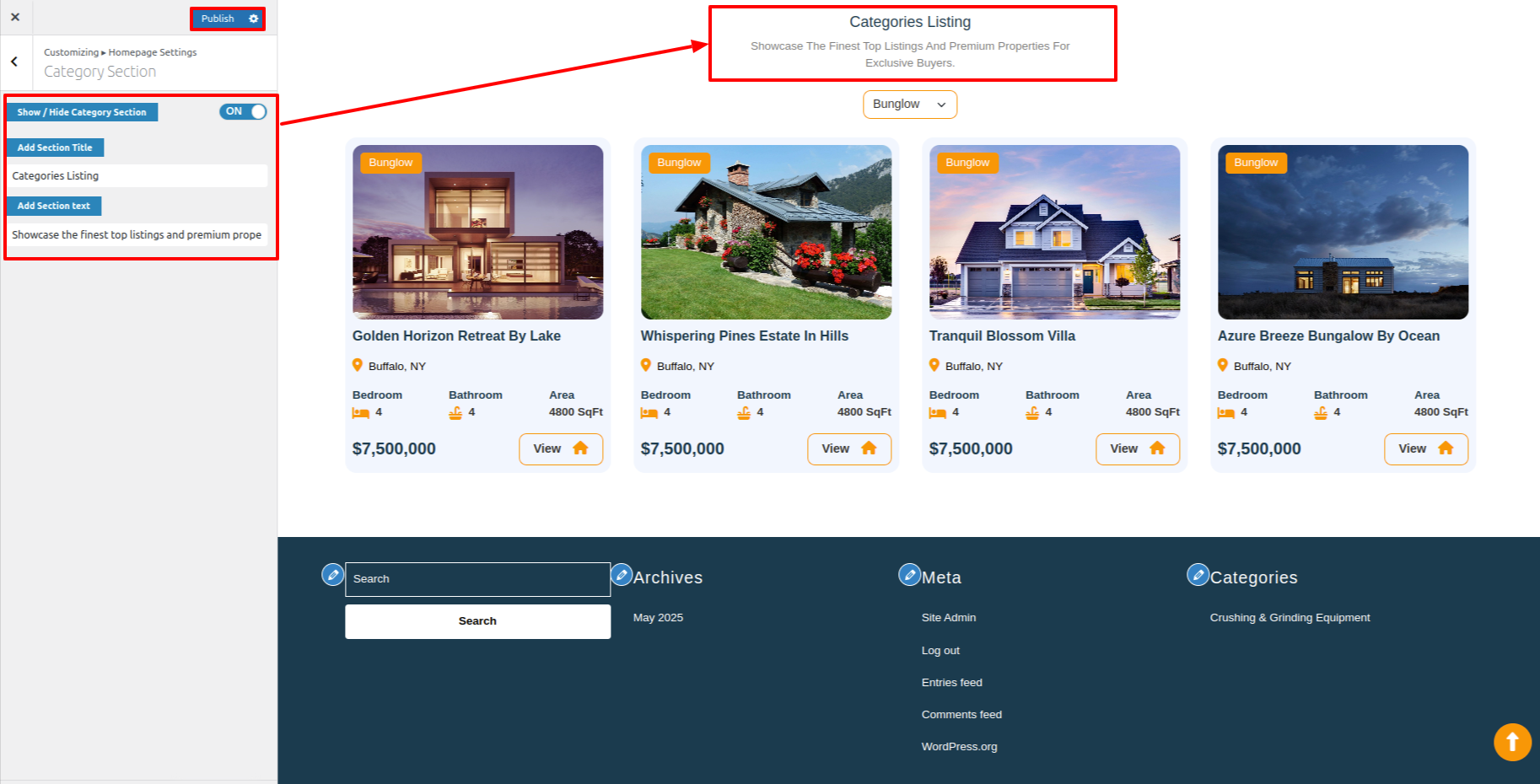 Now Go To Dashboard >> Appearance >> Customize Homepage Settings >> Category Section