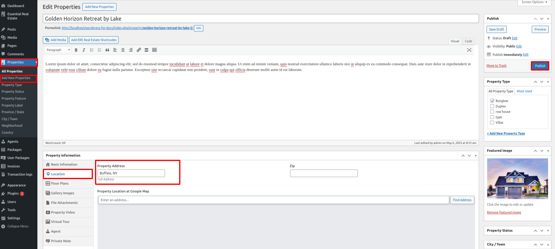 Then Select Category Property Type and add Featured Image as shown in figure.