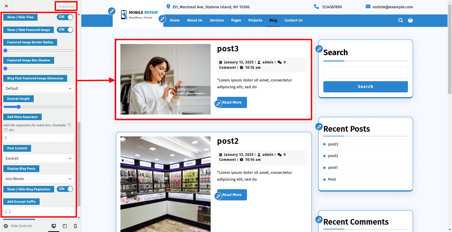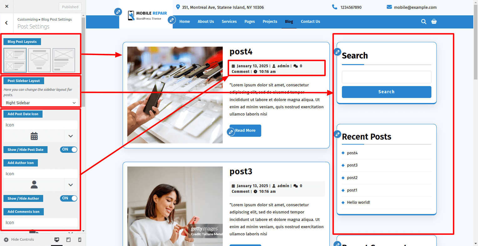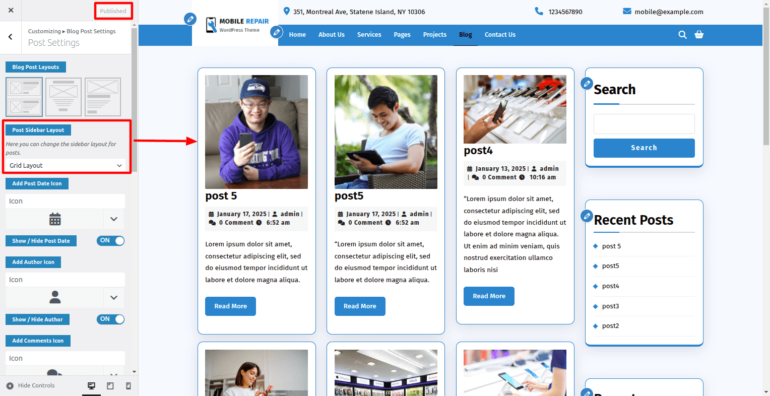 Go To Dashboard > Appearance > Customize > Blog Post Setting > Post Setting