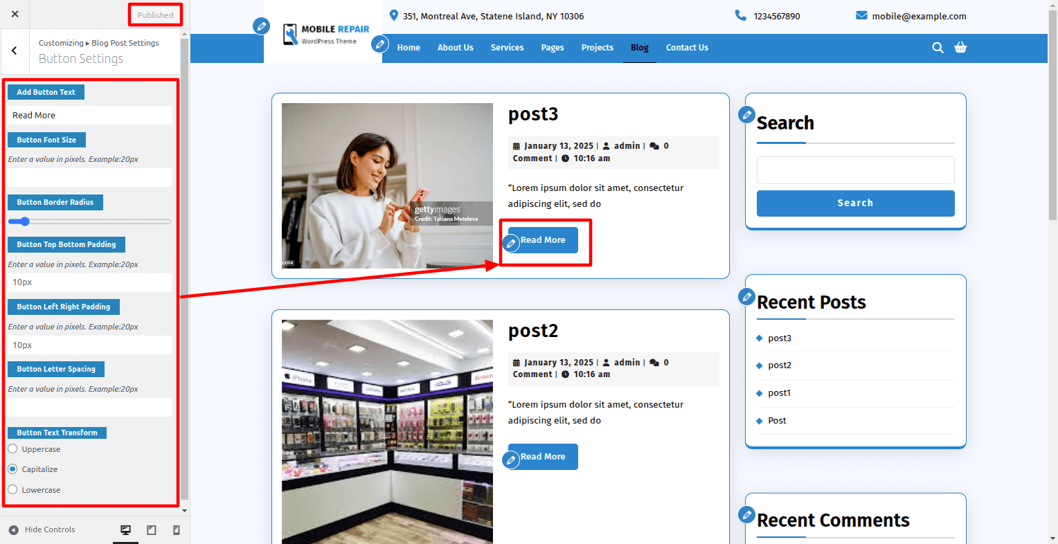 Go To Dashboard > Appearance > Customize > Blog Post Setting > Button Setting