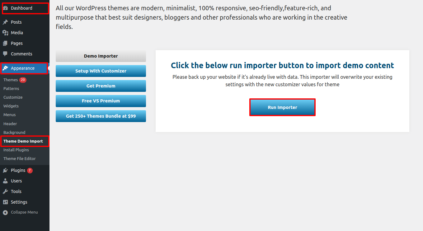 Theme Demo Import