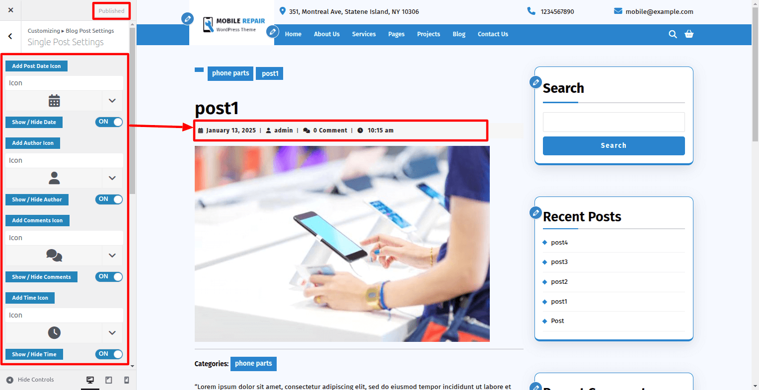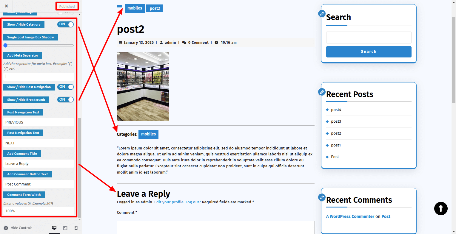 Go To Dashboard > Appearance > Customize > Blog Post Setting > Single Post Settings