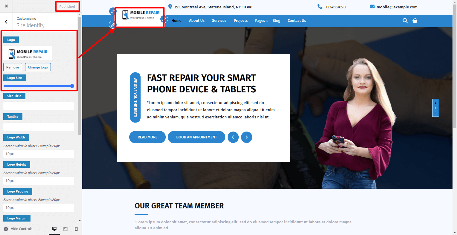 | Allow To Set Site Title, Tagline, Logo | ![]() |