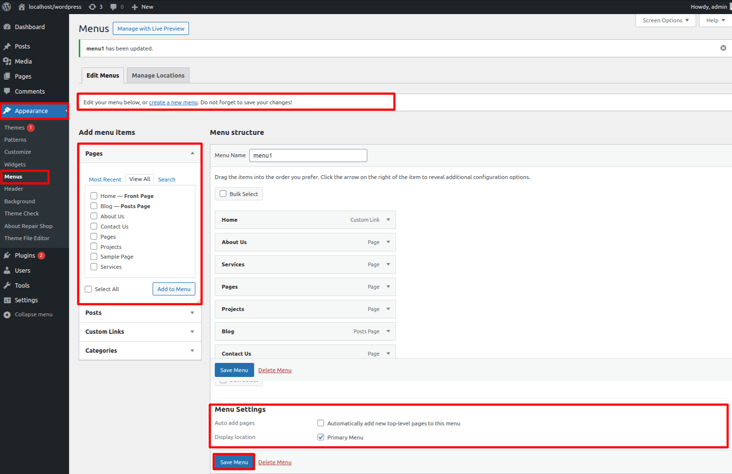 1.1 Visit Dashboard > Appearance > Themes.