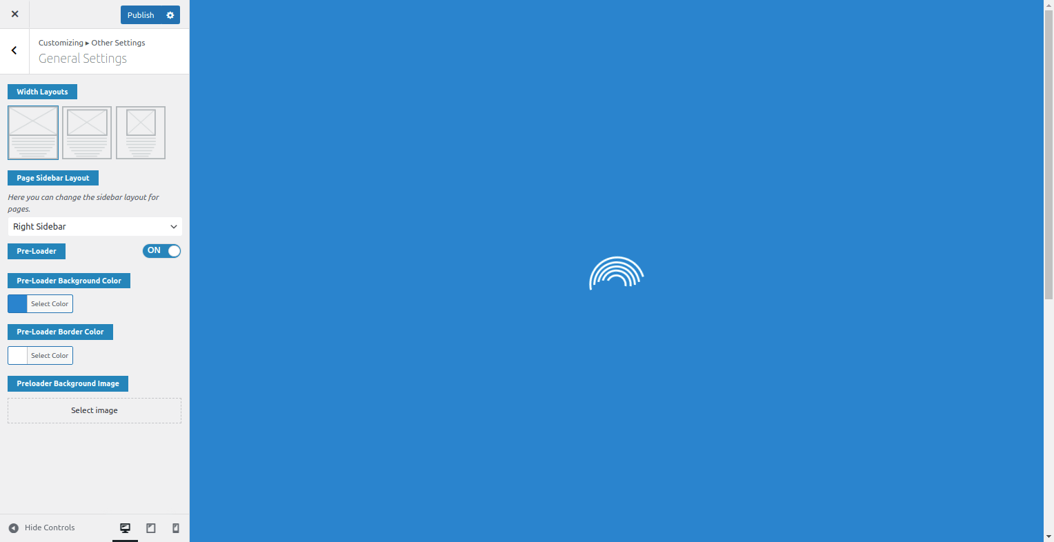 3. Pre-Loader: In this, you have option to show/hide the Pre-Loader in the theme and also have option for Pre-Loader type.