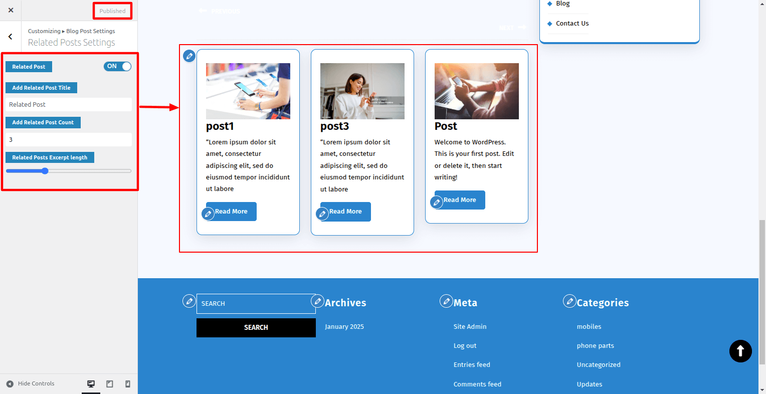 Go To Dashboard > Appearance > Customize > Blog Post Setting > Related Posts Setting