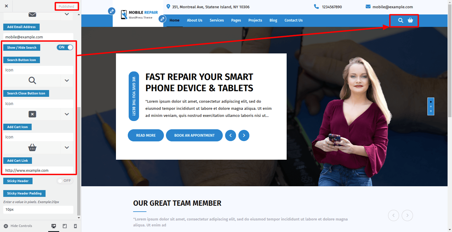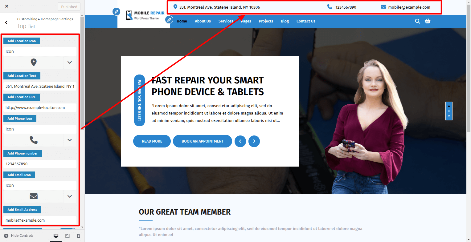 Visit Customizer > Homepage Settings > Top Bar