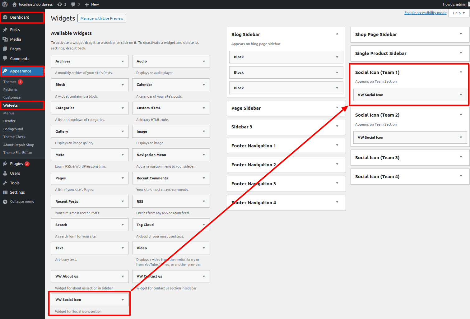 2. Add Vw Social Icon Widget in Social Widget area.