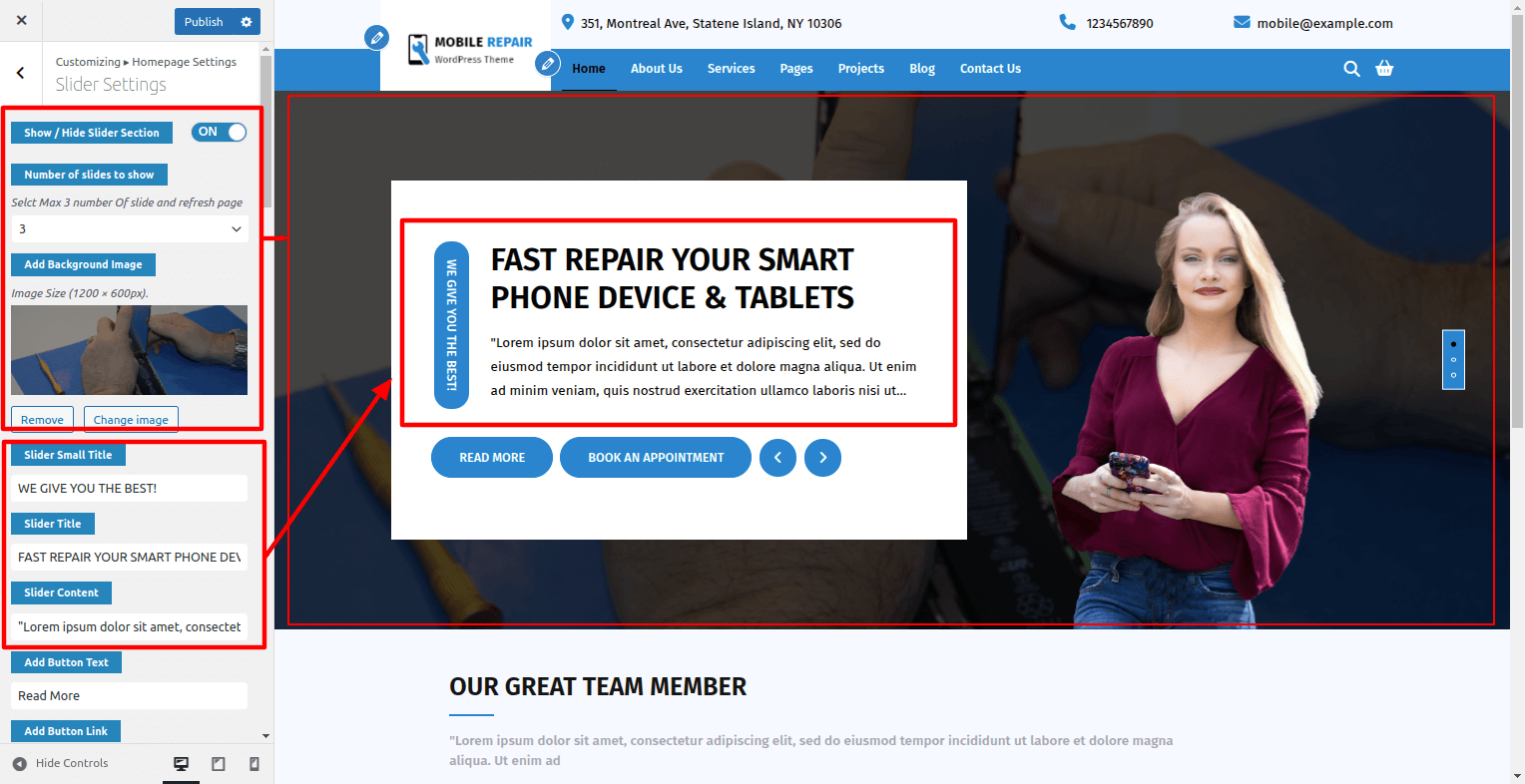 Visit Customizer > Homepage Settings > Slider Section