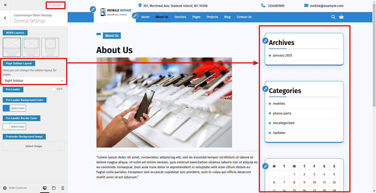 In this, you can change the page sidebar layout.