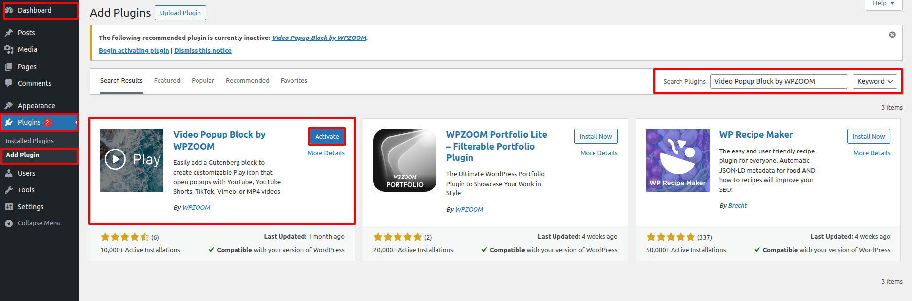 To add a video popup feature on the banner’s video play button, We need to Install Video Popup Block by WPZOOM plugin. Go To Dashboard >> Plugins >> Add New Plugin Video pop up will appear as such on the front end. Banner will appear as such on the front end.